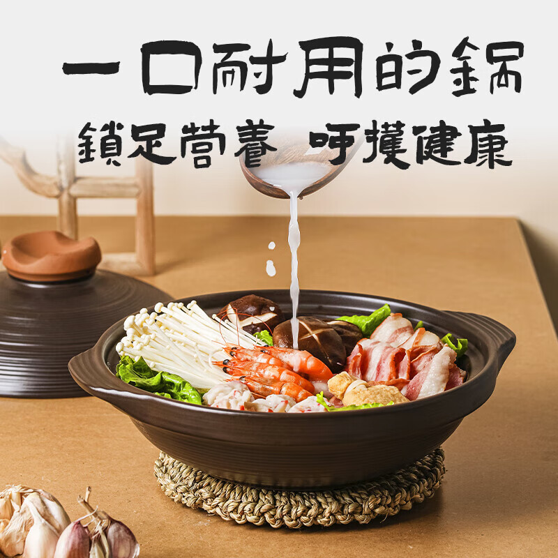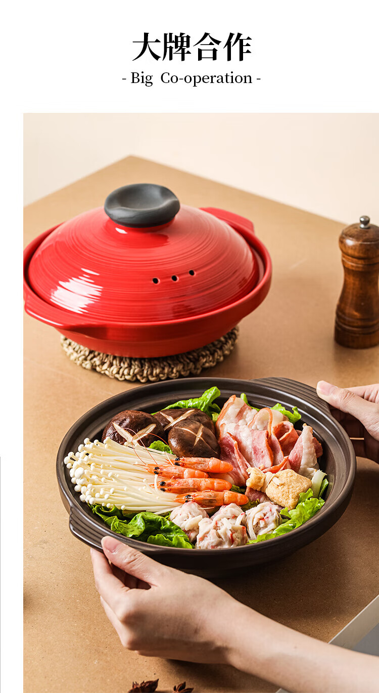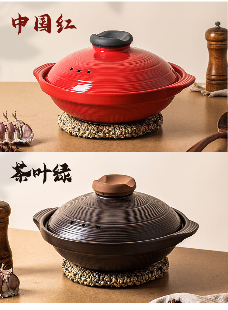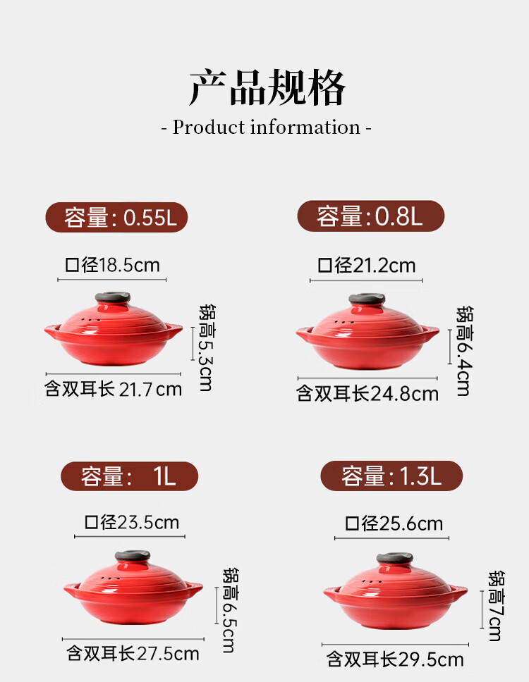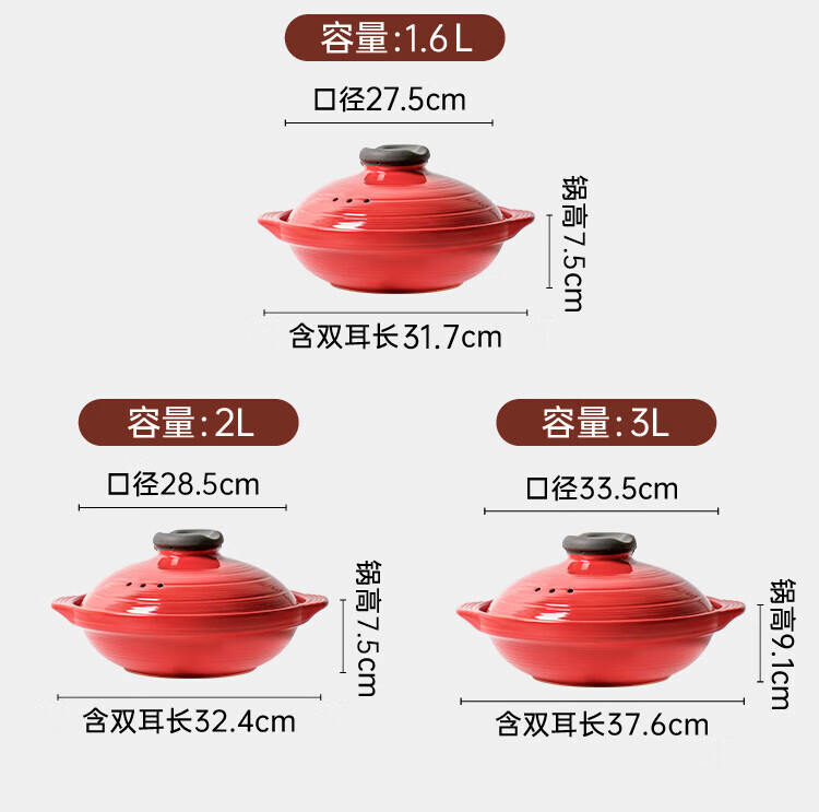 包装清单: 陶瓷砂锅煲仔饭煲汤明火干烧燃气灶耐高温锅HJ7内黑外红3L