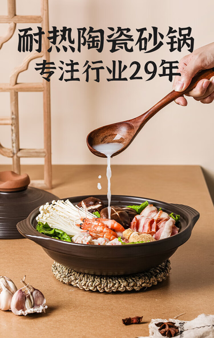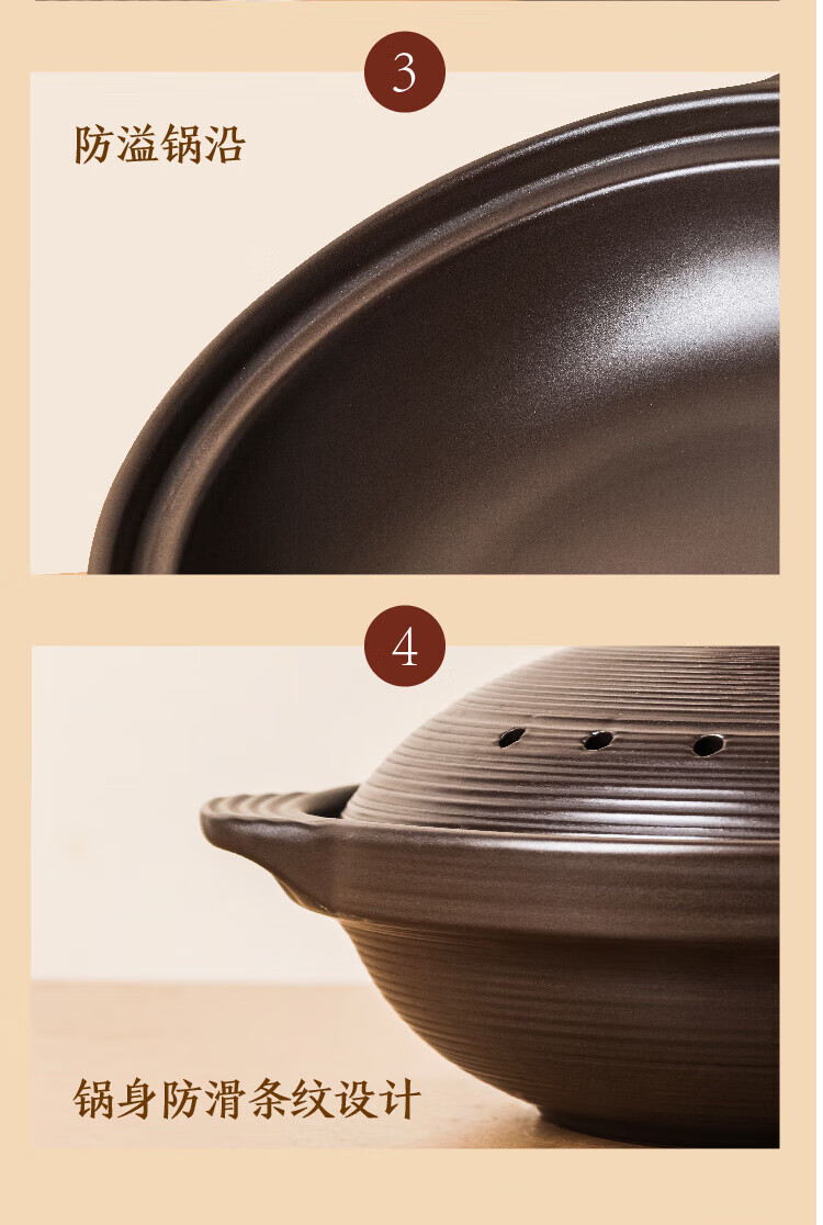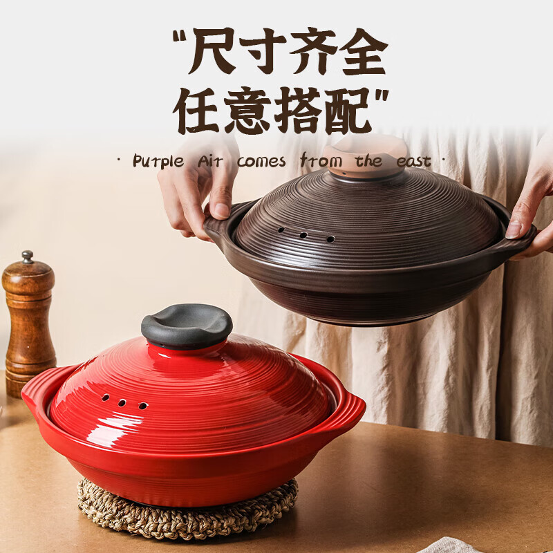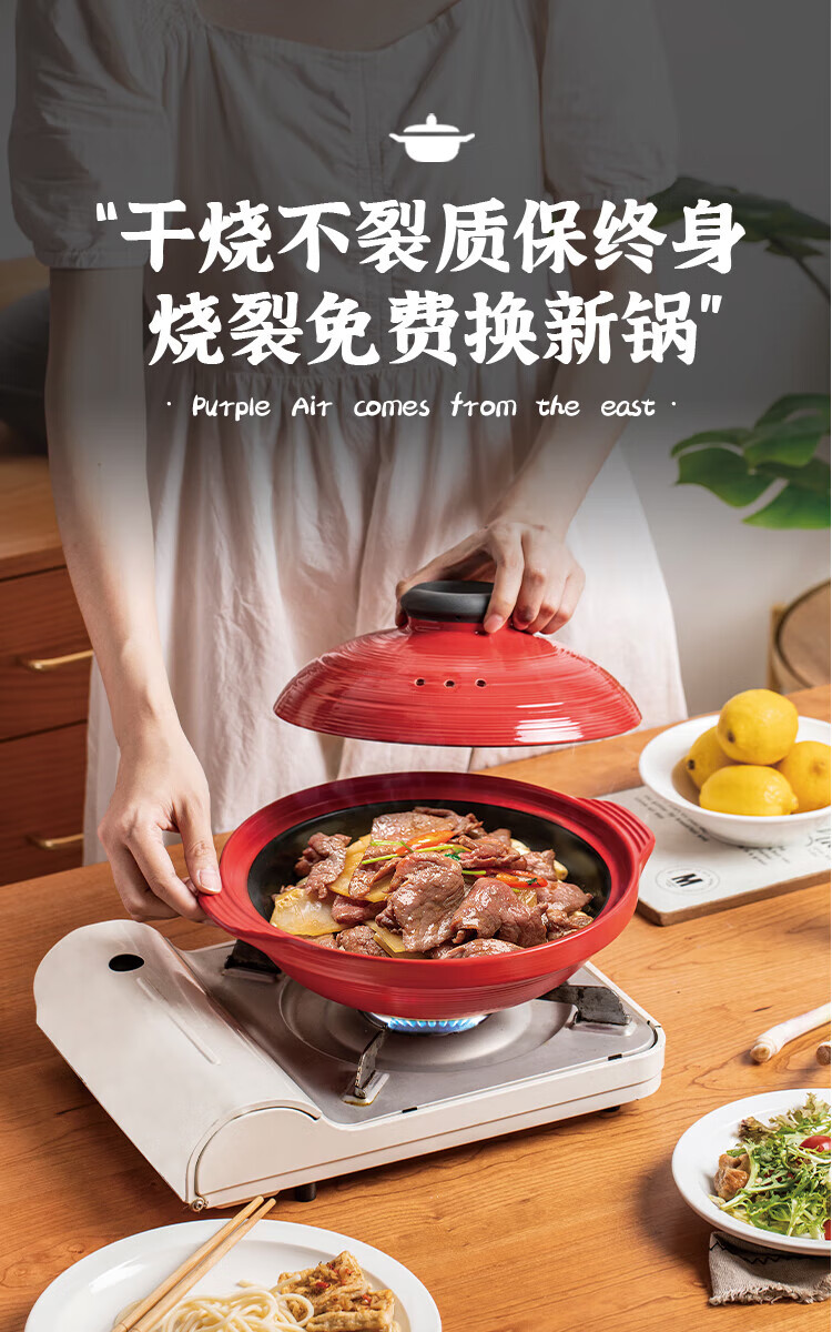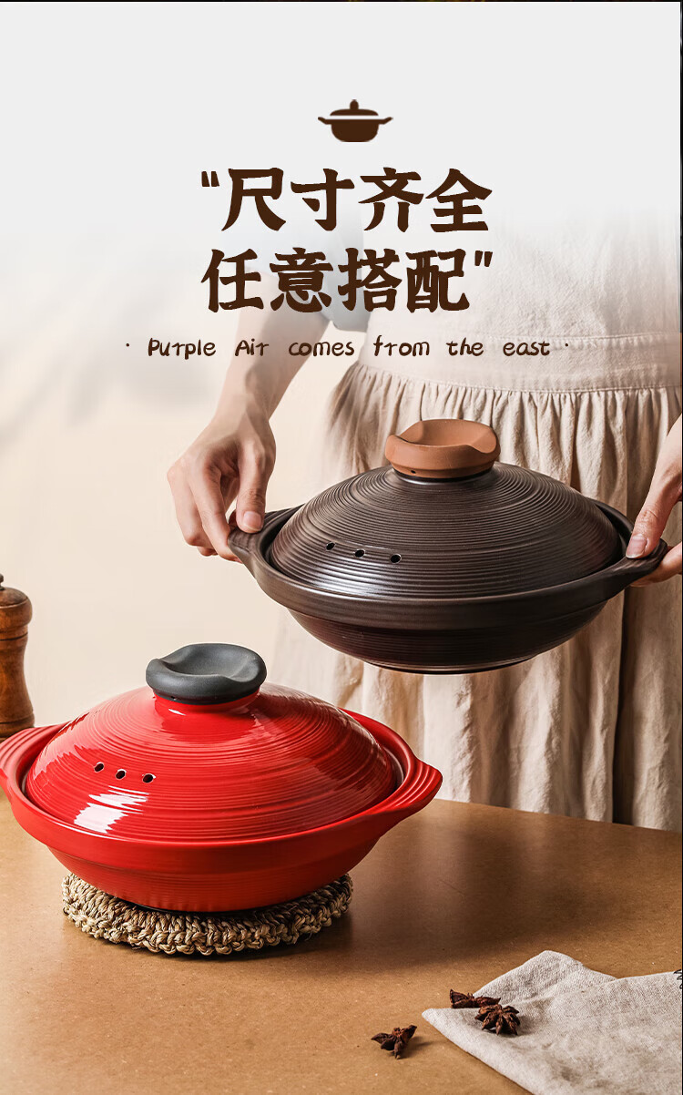 包装清单: 陶瓷砂锅煲仔饭煲汤明火干烧燃气灶耐高温锅HJ7内黑外红3L