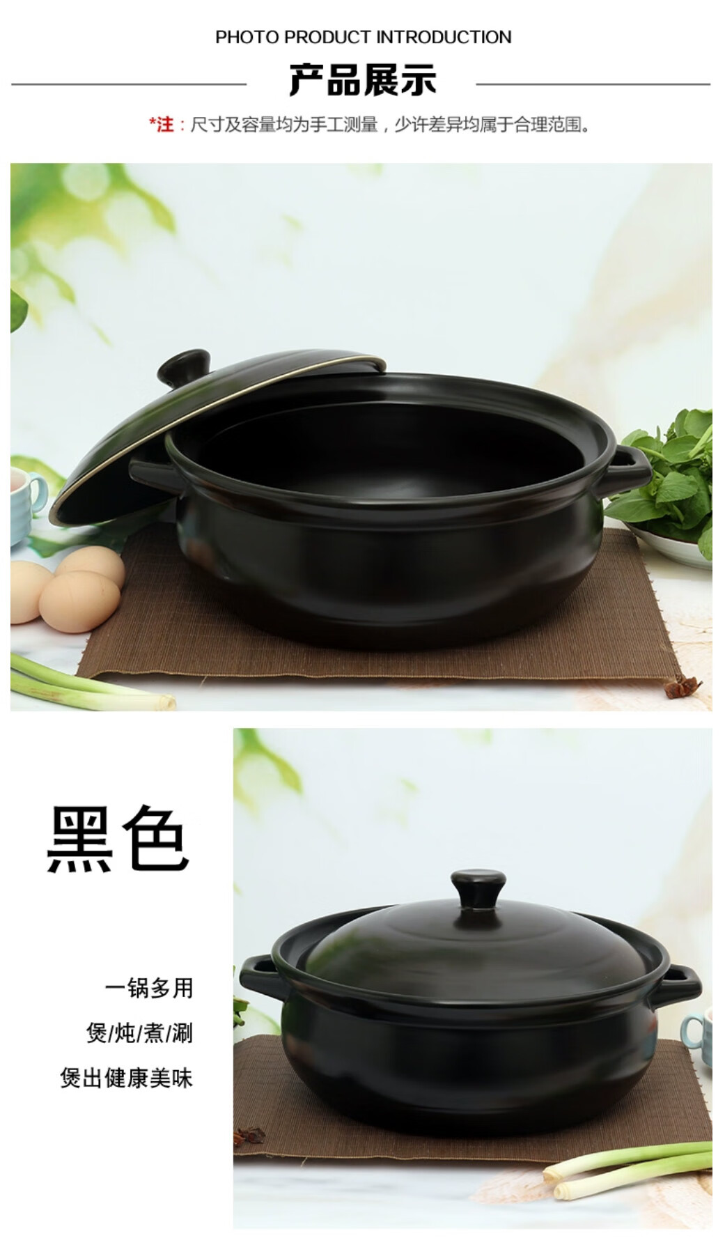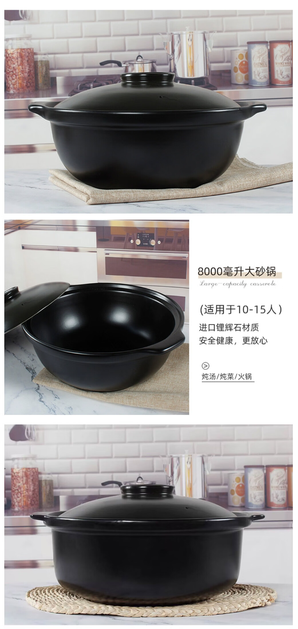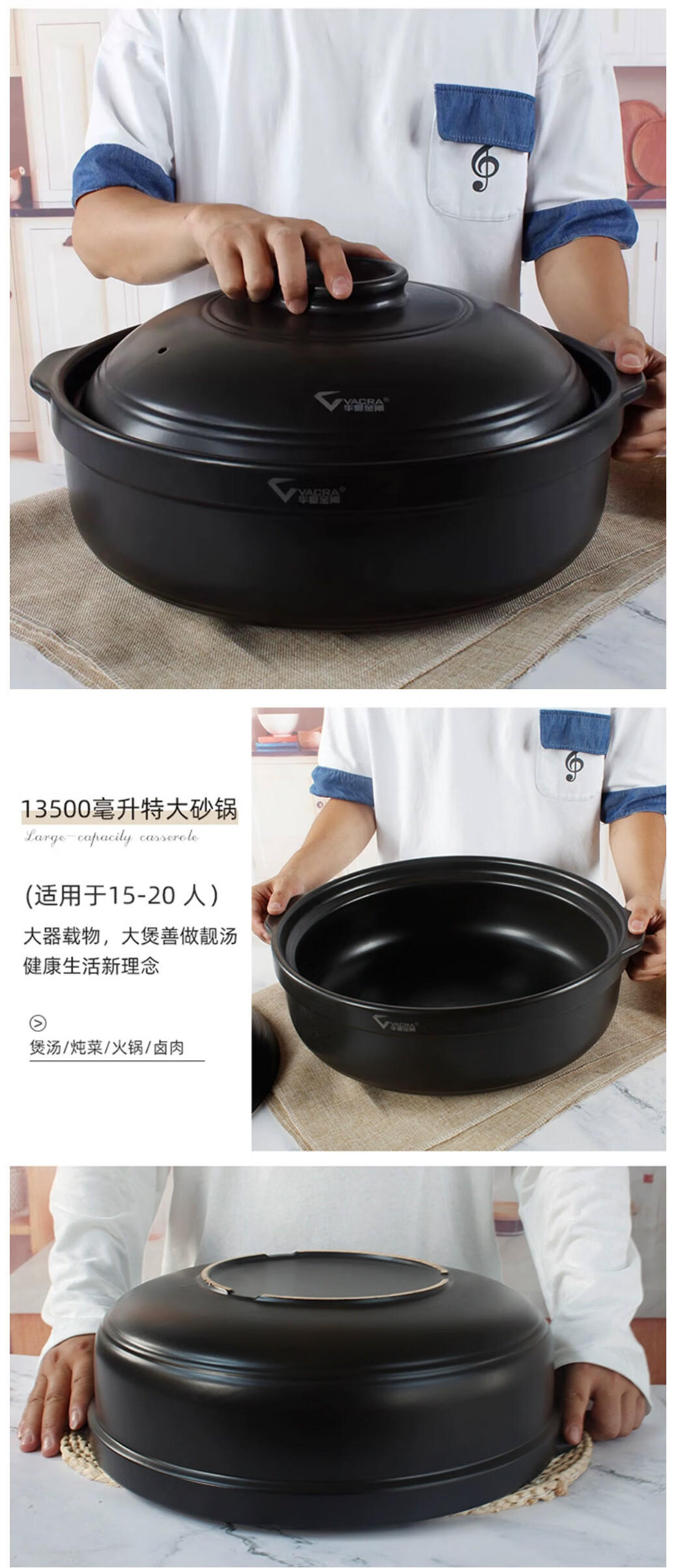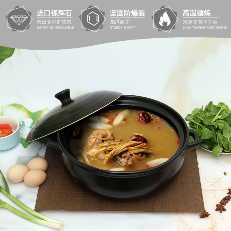 • 商品名称:华美冠(HuaMeiGuan)大砂锅炖锅酒店煲汤大容量带盖火锅煲炖菜砂锅 黑色7.3L 砂锅 黑色7.3L/个