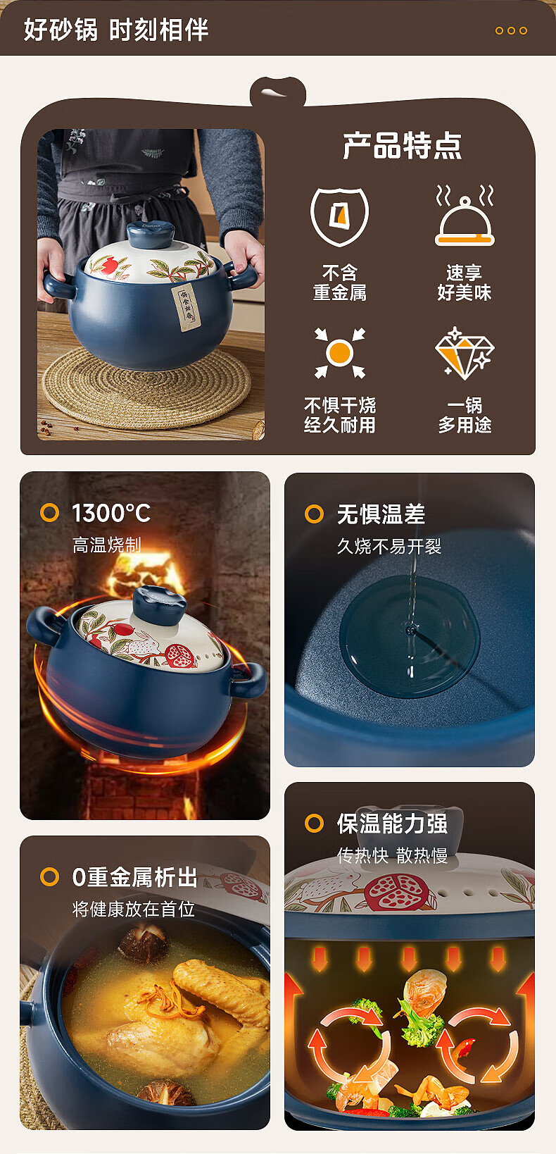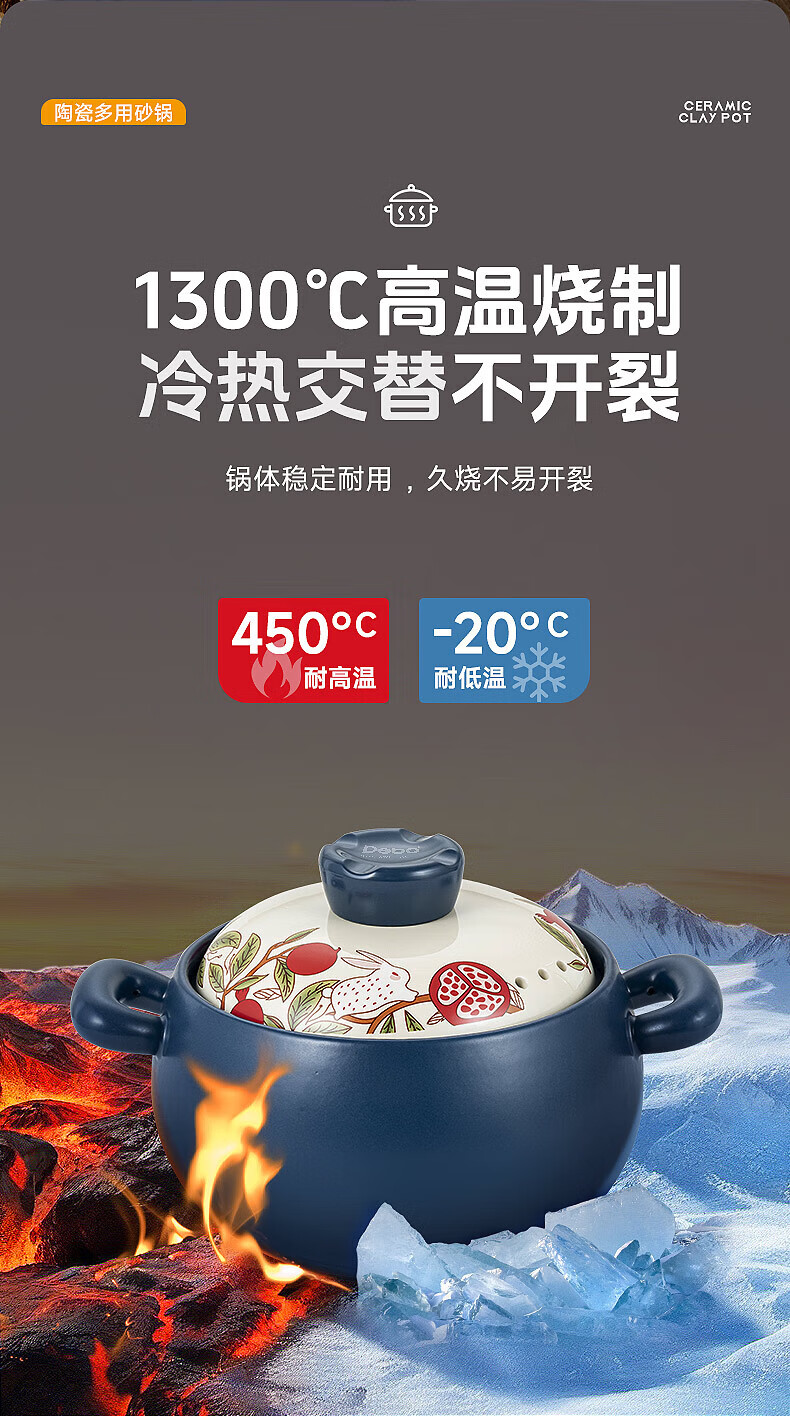 商品名称: Debo菲力克斯陶瓷砂锅4L DB-191 DB-191/个