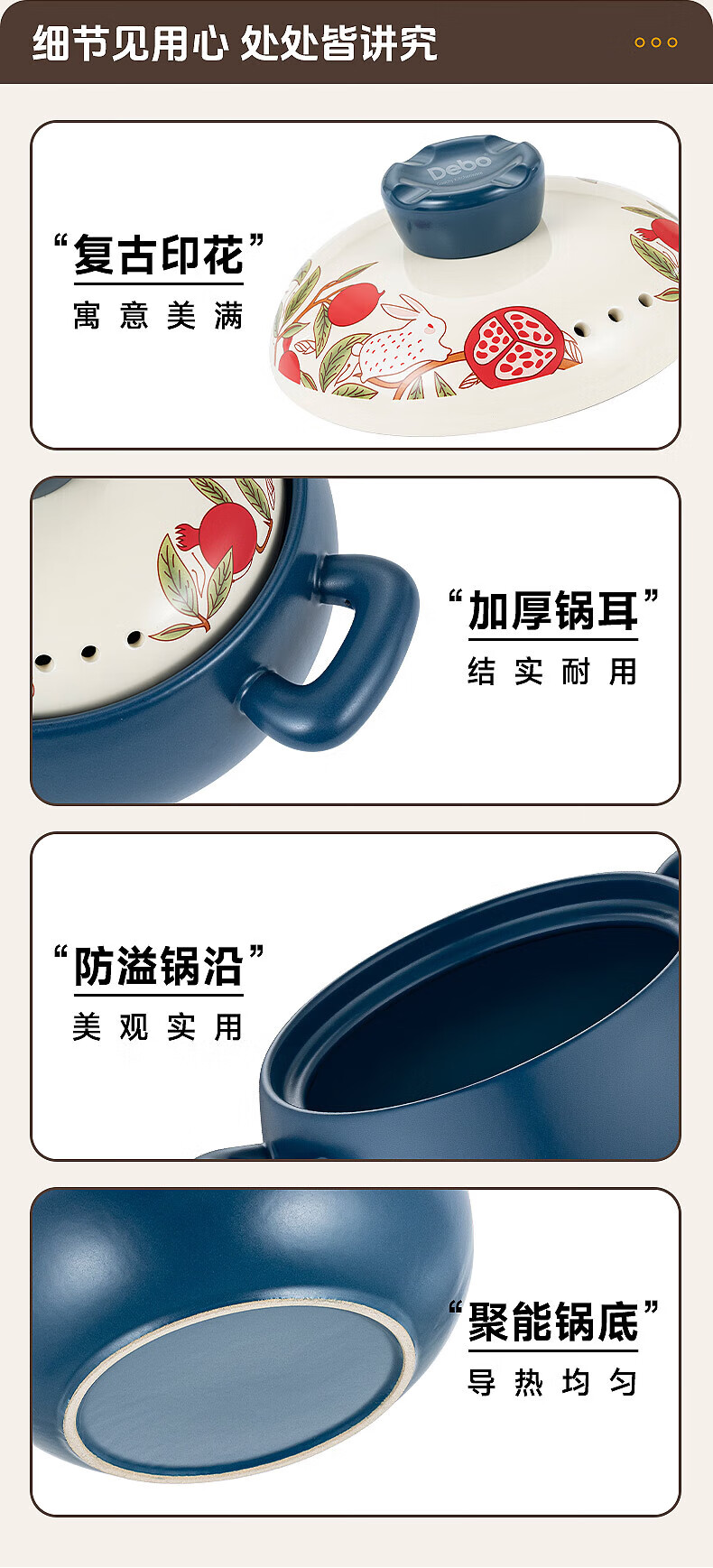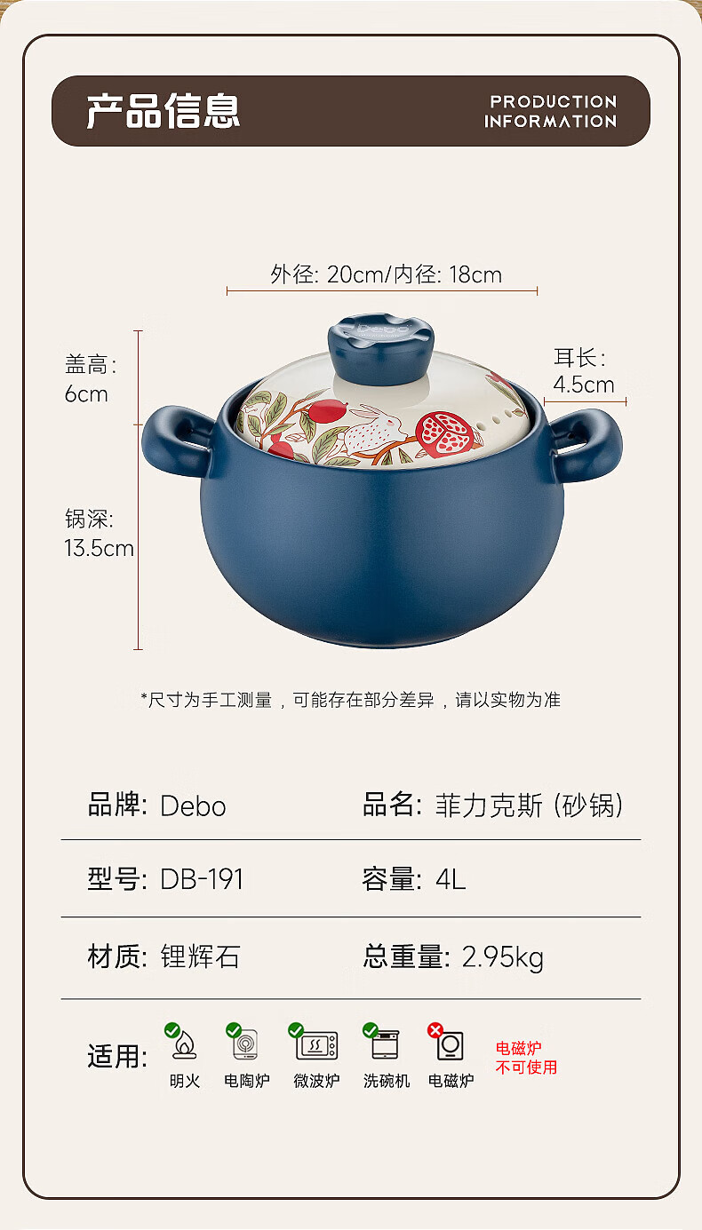 厨具  > 烹饪锅具  > 砂锅  >  Debo  >  Debo菲力克斯陶瓷砂锅4L DB-191 DB-191/个