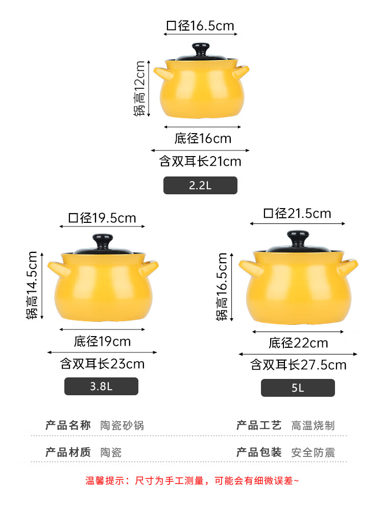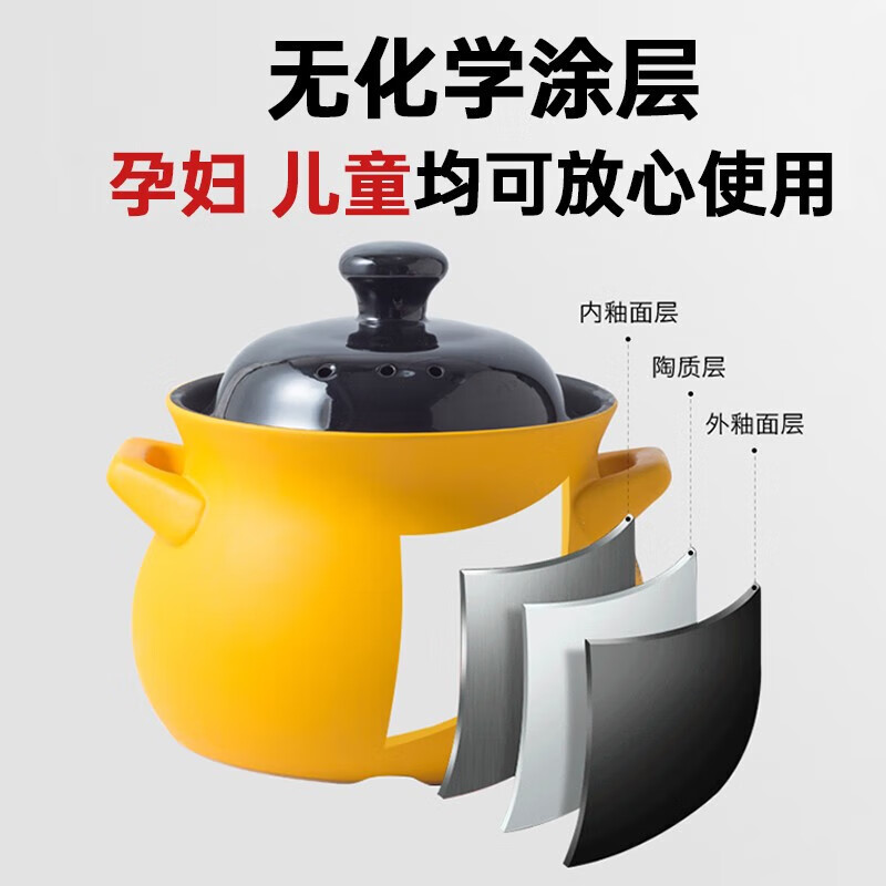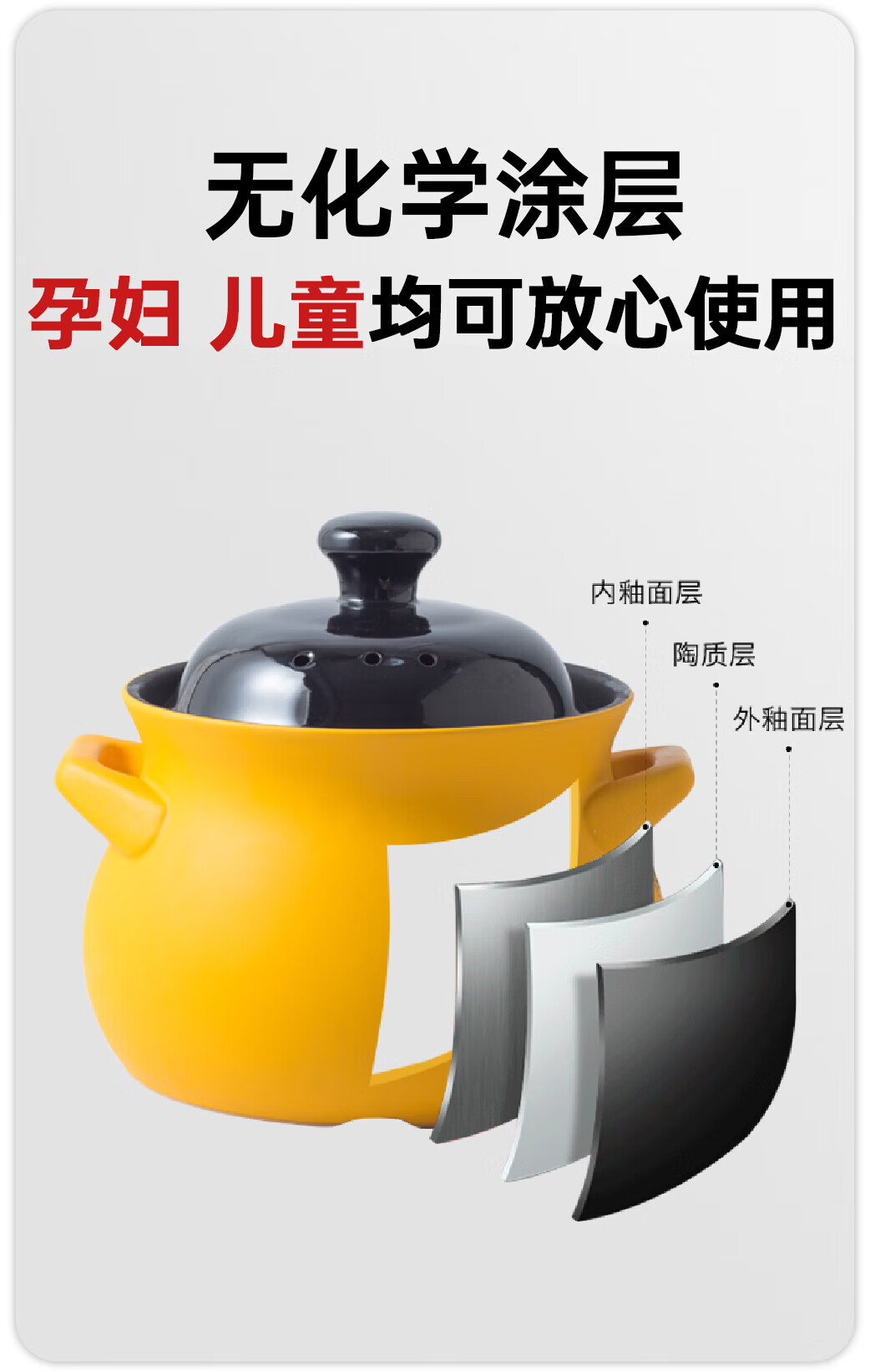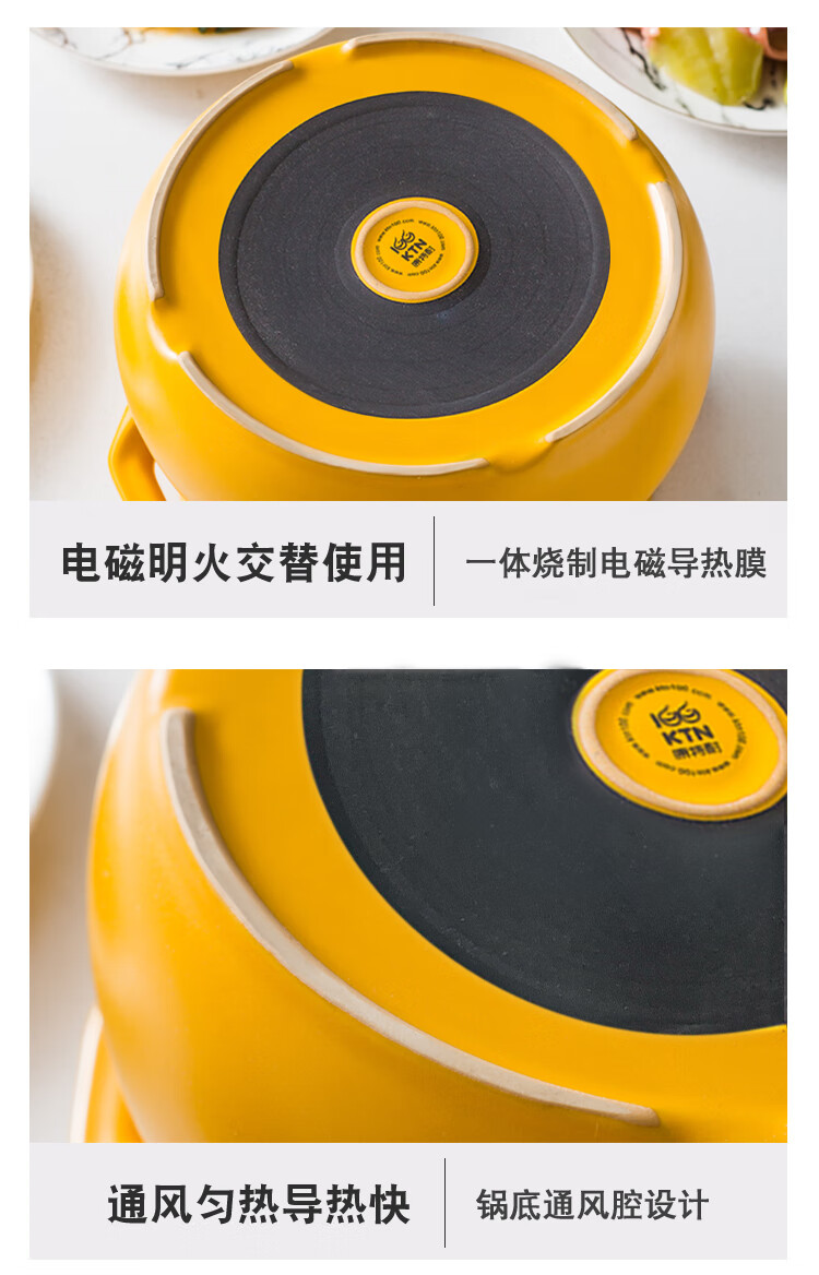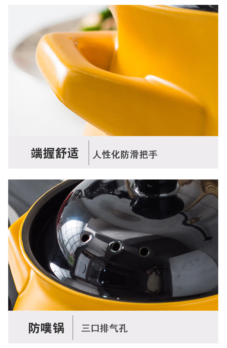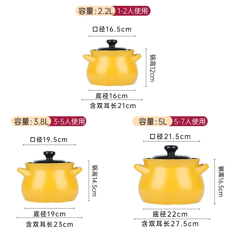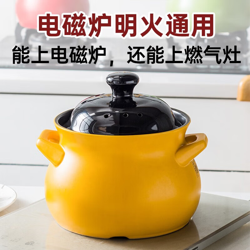 商品名称: 康特耐(IKTN)砂锅煲汤锅炖锅陶瓷锅家用煲汤锅电磁炉明火通用 滋生锅黑黄3.8L 滋生锅黑黄3.8L/个