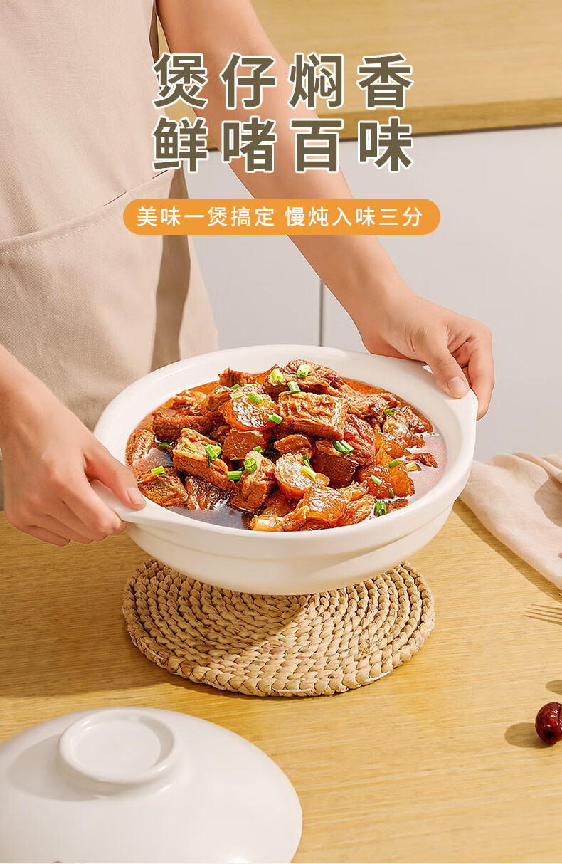 商品名称: 思凯卓陶瓷砂锅煲汤锅炖锅养生煲家用宽口大容量耐高温干烧不开裂2.8L白 skzsg001/个
