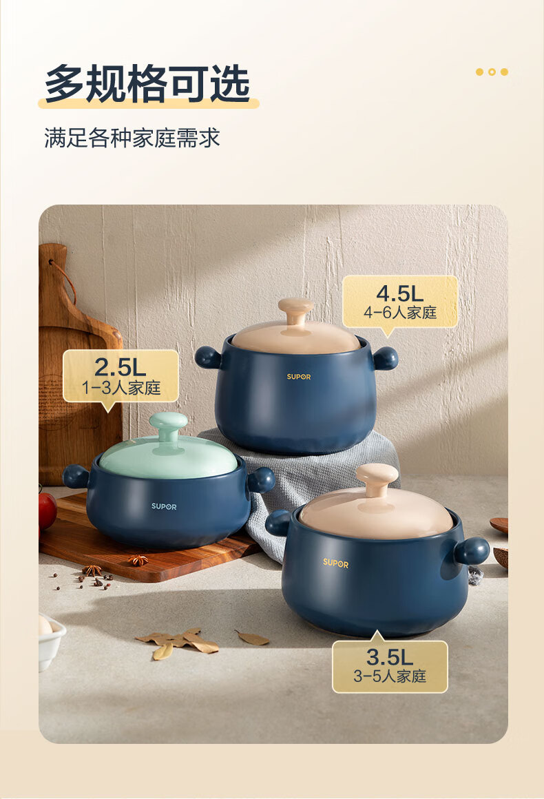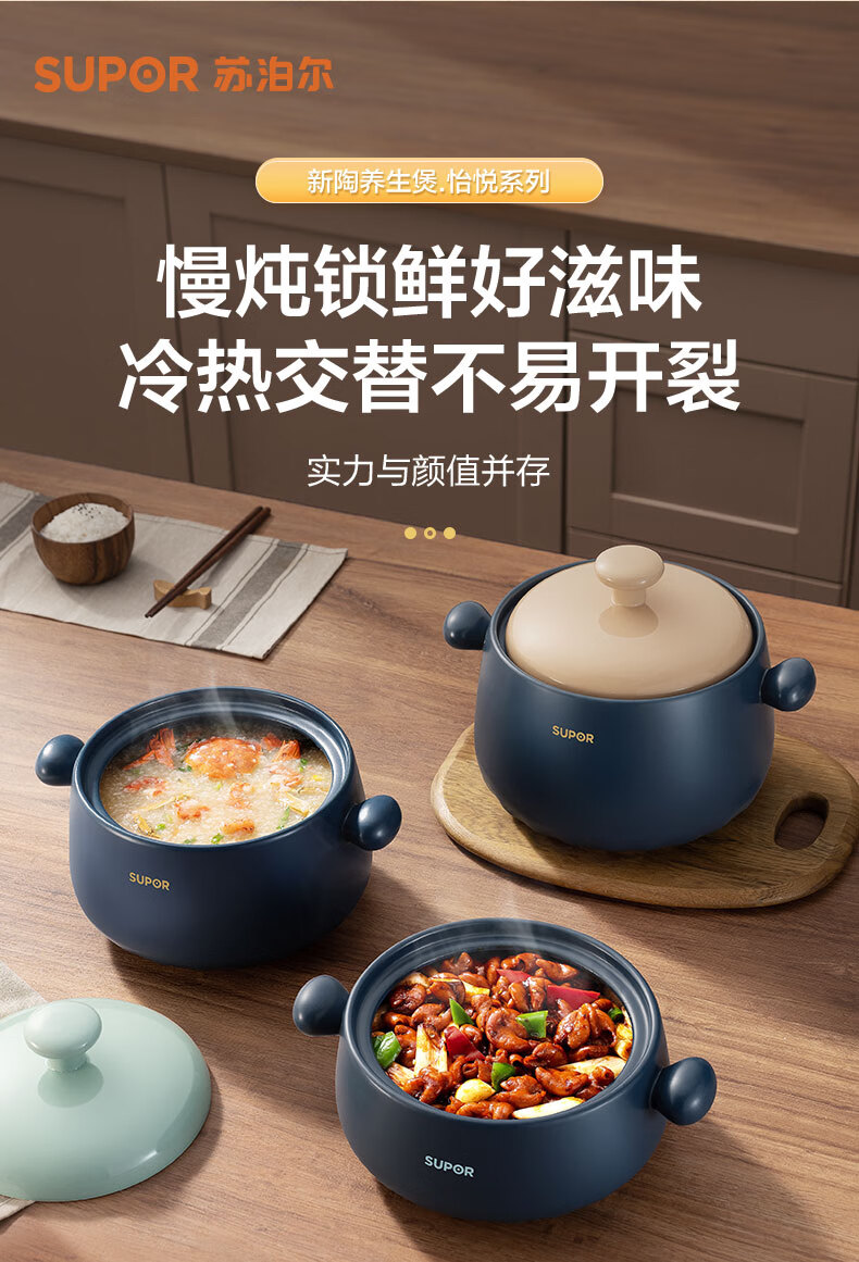• 商品名称:苏泊尔(SUPOR)砂锅 煲汤锅炖锅陶瓷煲仔饭耐高温不开裂瓦罐3.5L 砂锅/个