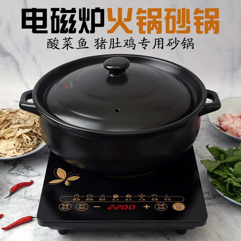华美冠(HuaMeiGuan) 耐高温陶瓷砂锅燃气电磁炉电陶炉煲汤锅 白色5500毫升 白色5500毫升/个