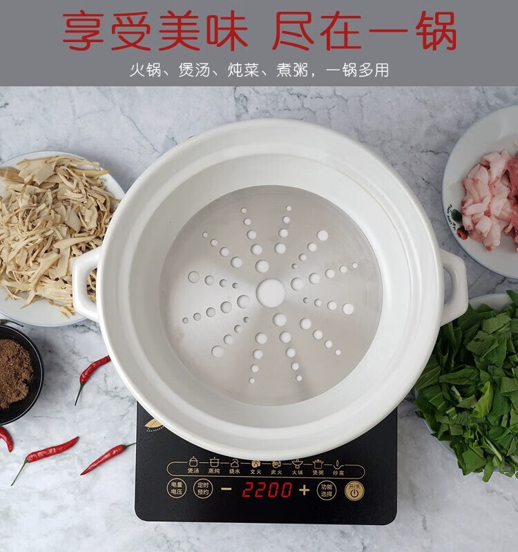 • 商品名称:华美冠(HuaMeiGuan) 耐高温陶瓷砂锅燃气电磁炉电陶炉煲汤锅 白色5500毫升 白色5500毫升/个