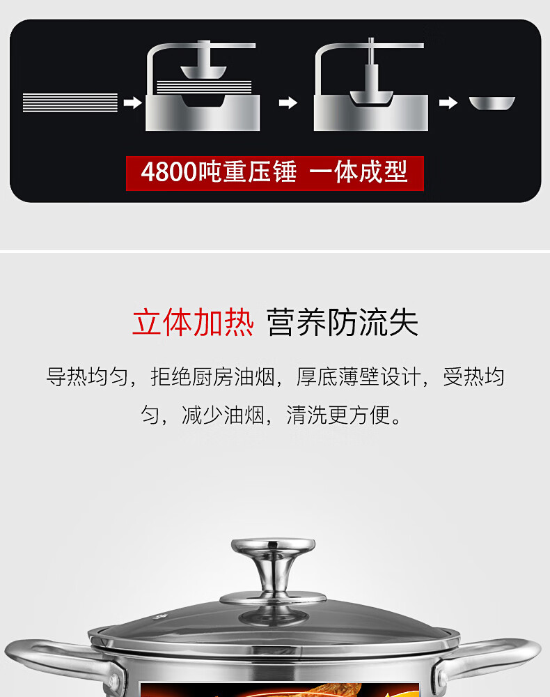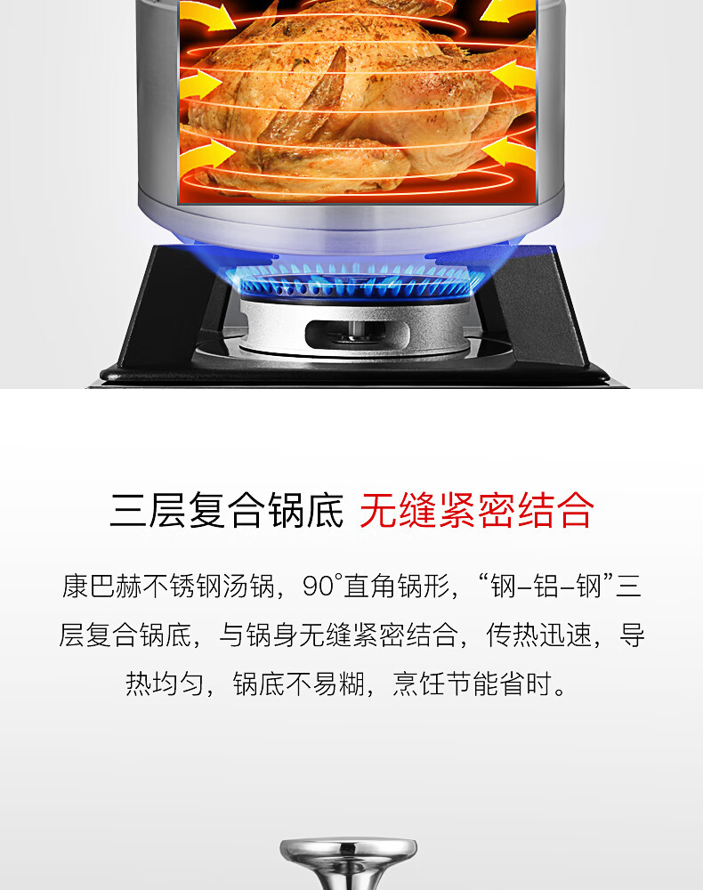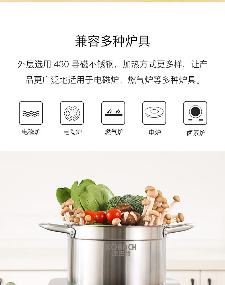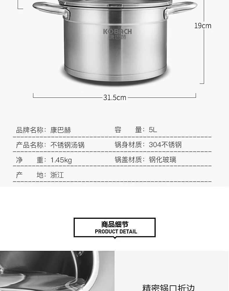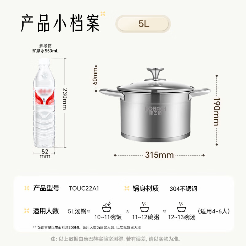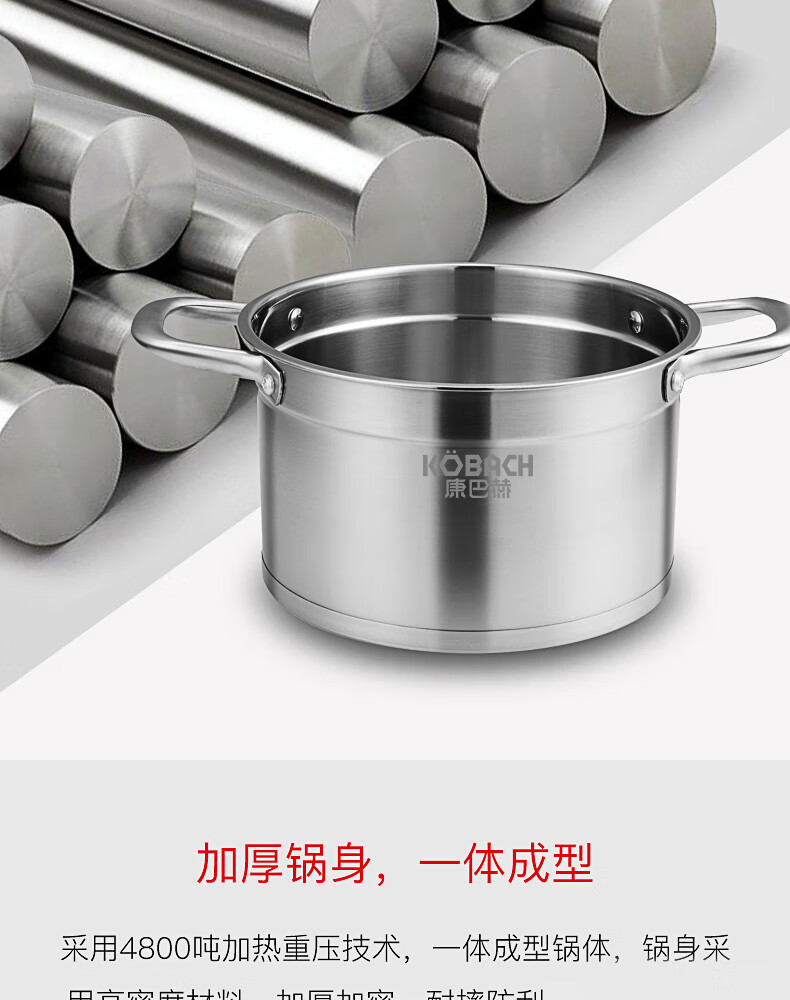 • 商品名称:康巴赫(KOBACH)汤锅304不锈钢22cm加厚复底双耳炖锅可视锅盖家用电磁炉燃气通用 【304不锈钢汤锅22cm】/个