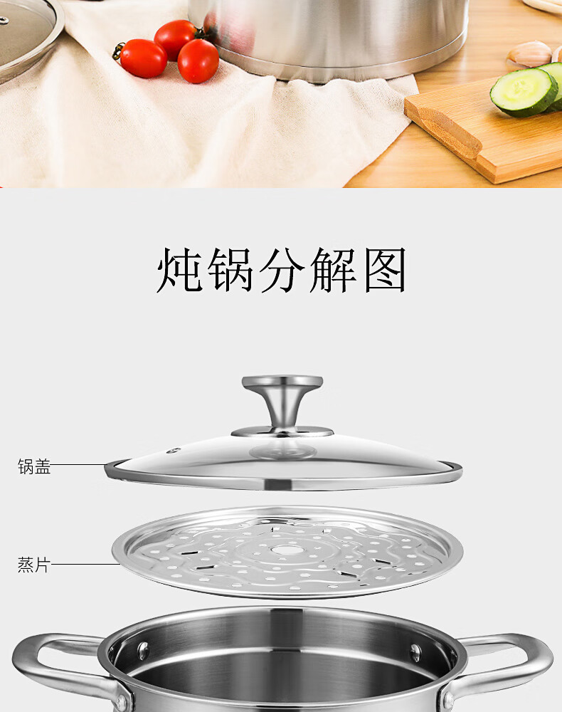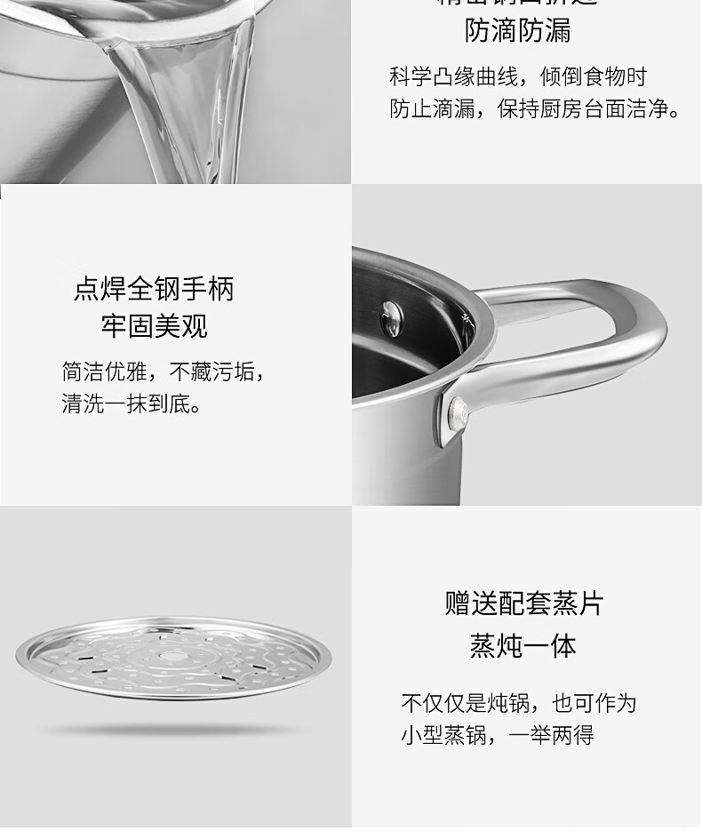 商品名称: 康巴赫(KOBACH)汤锅304不锈钢22cm加厚复底双耳炖锅可视锅盖家用电磁炉燃气通用 【304不锈钢汤锅22cm】/个