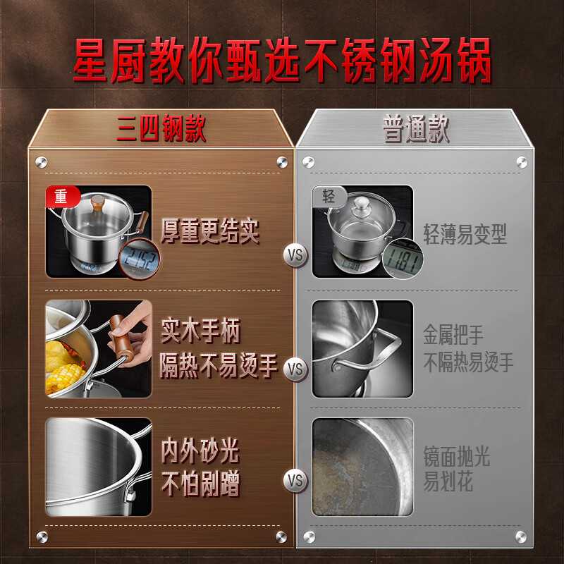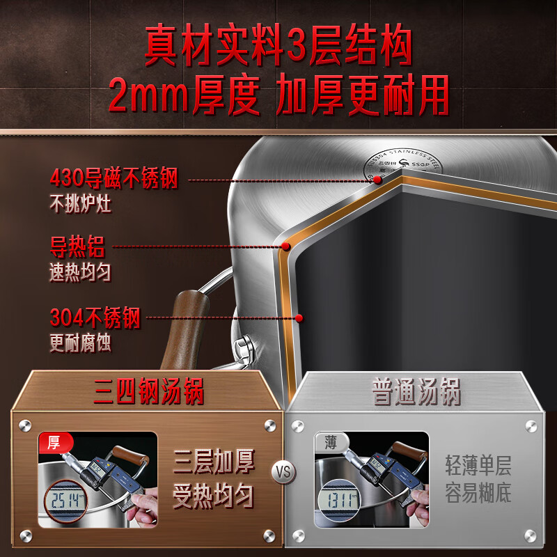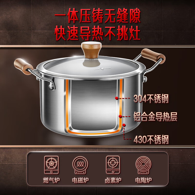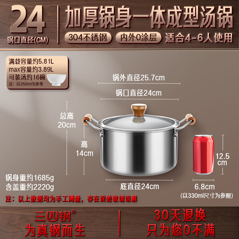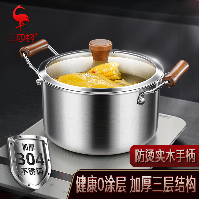• 商品名称:三四钢(SSGP)®304不锈钢汤锅无涂层加厚煮锅不粘锅家用煲汤蒸锅24cm 35073 35073 法兰克福直身汤锅:24cm/个