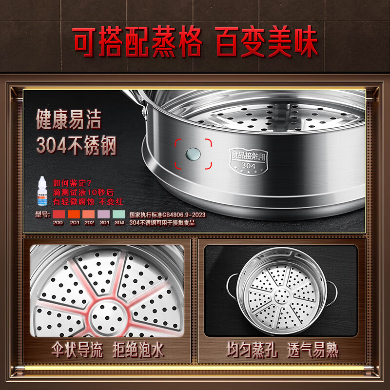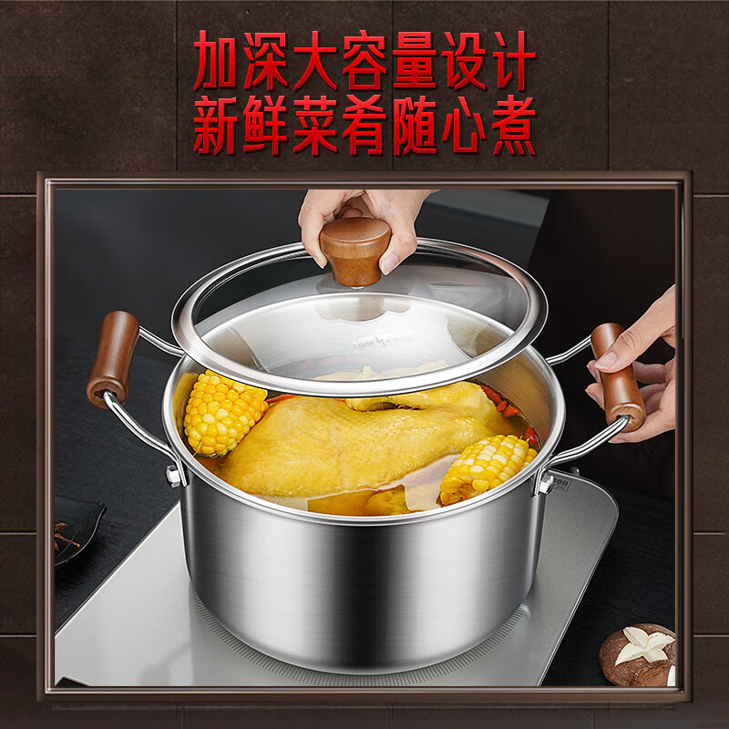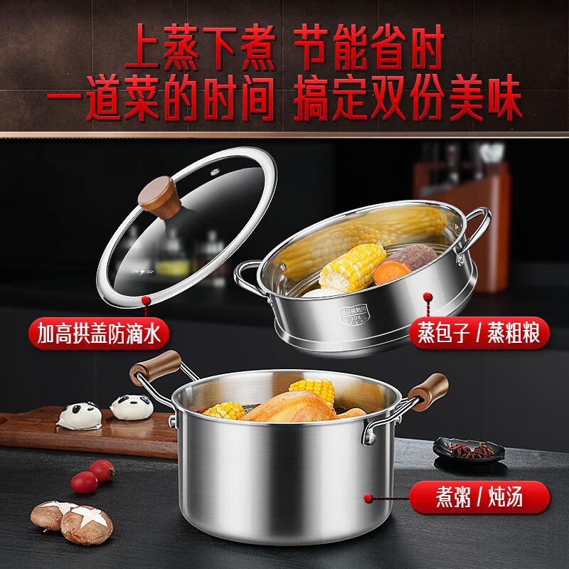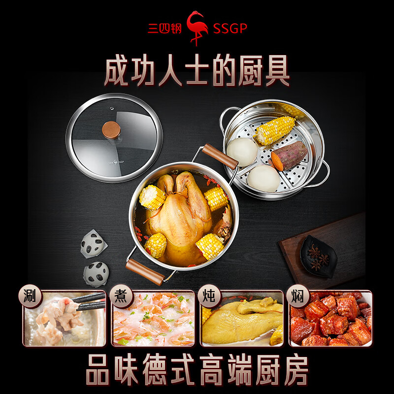 商品名称: 三四钢(SSGP)®304不锈钢汤锅无涂层加厚煮锅不粘锅家用煲汤蒸锅24cm 35073 35073 法兰克福直身汤锅:24cm/个