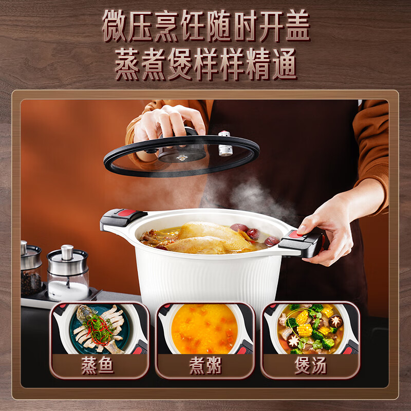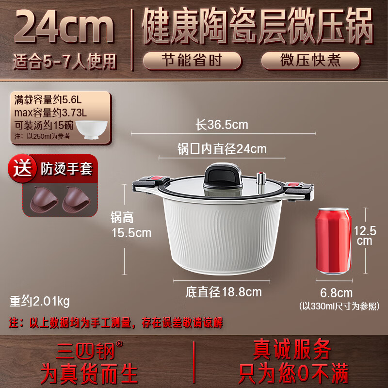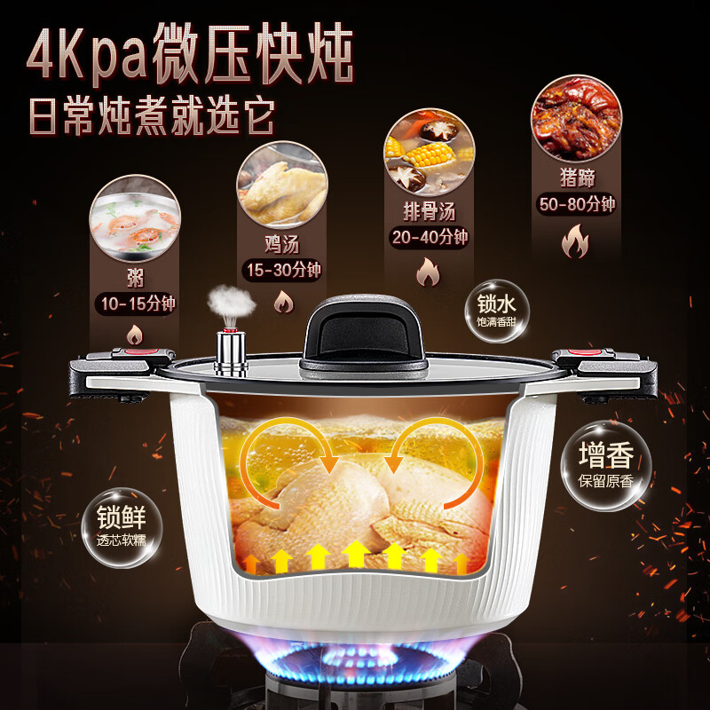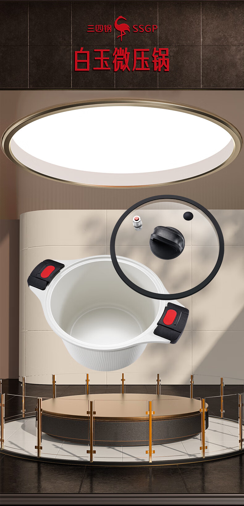 • 商品名称:三四钢®微压锅多功能汤锅陶瓷不粘炖锅煮粥煮汤燃气电磁炉专用24cm 27731 白玉微压锅:5.6L/个