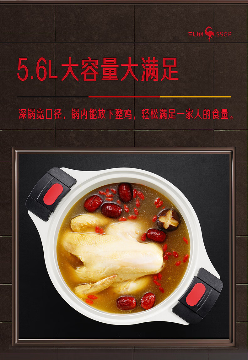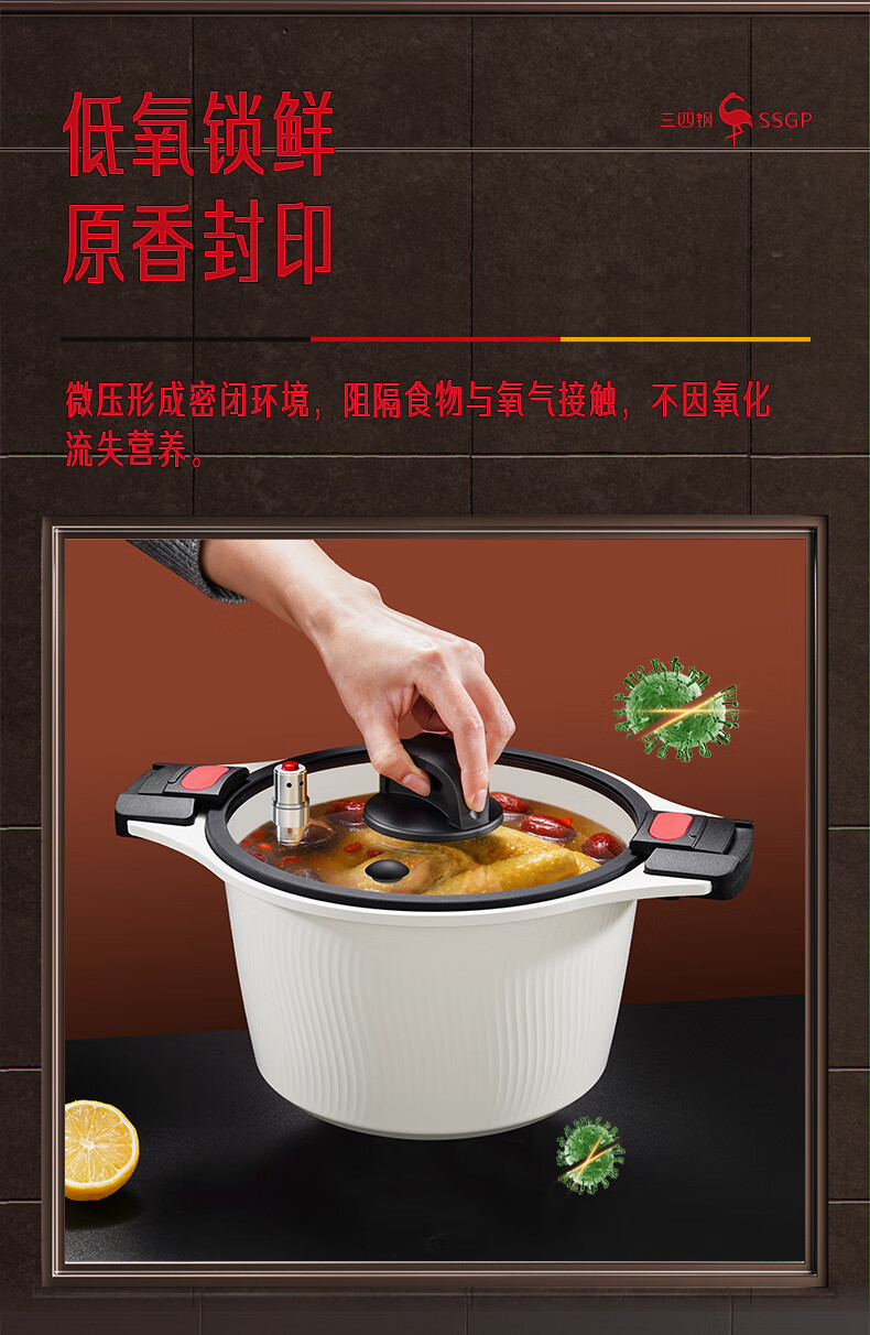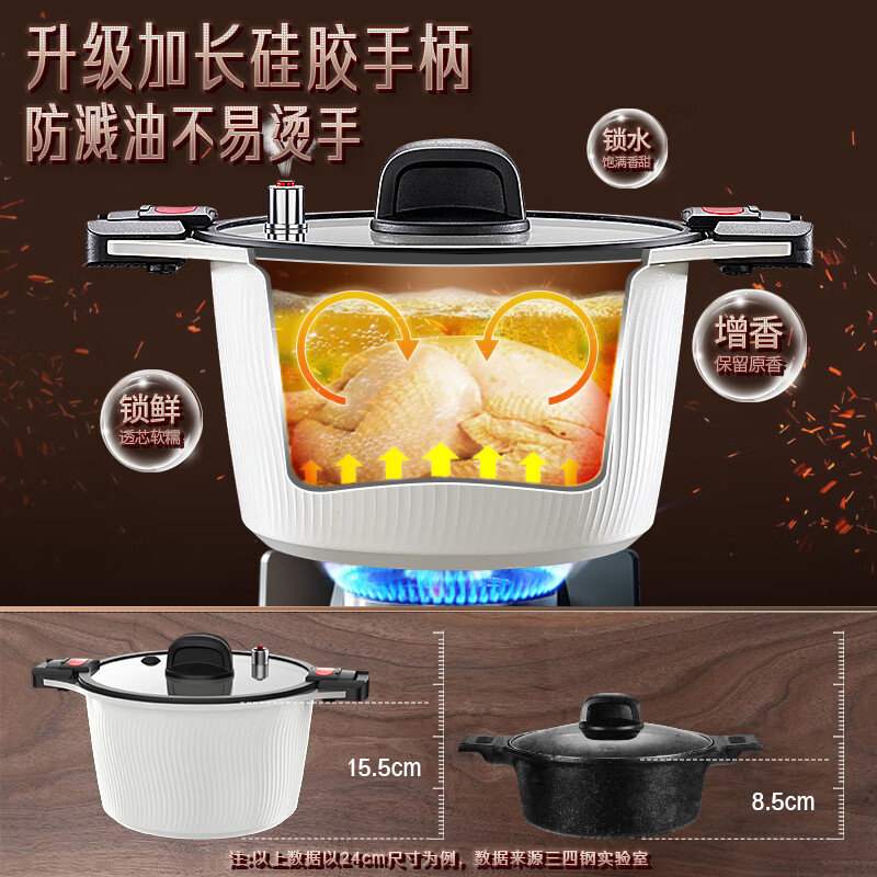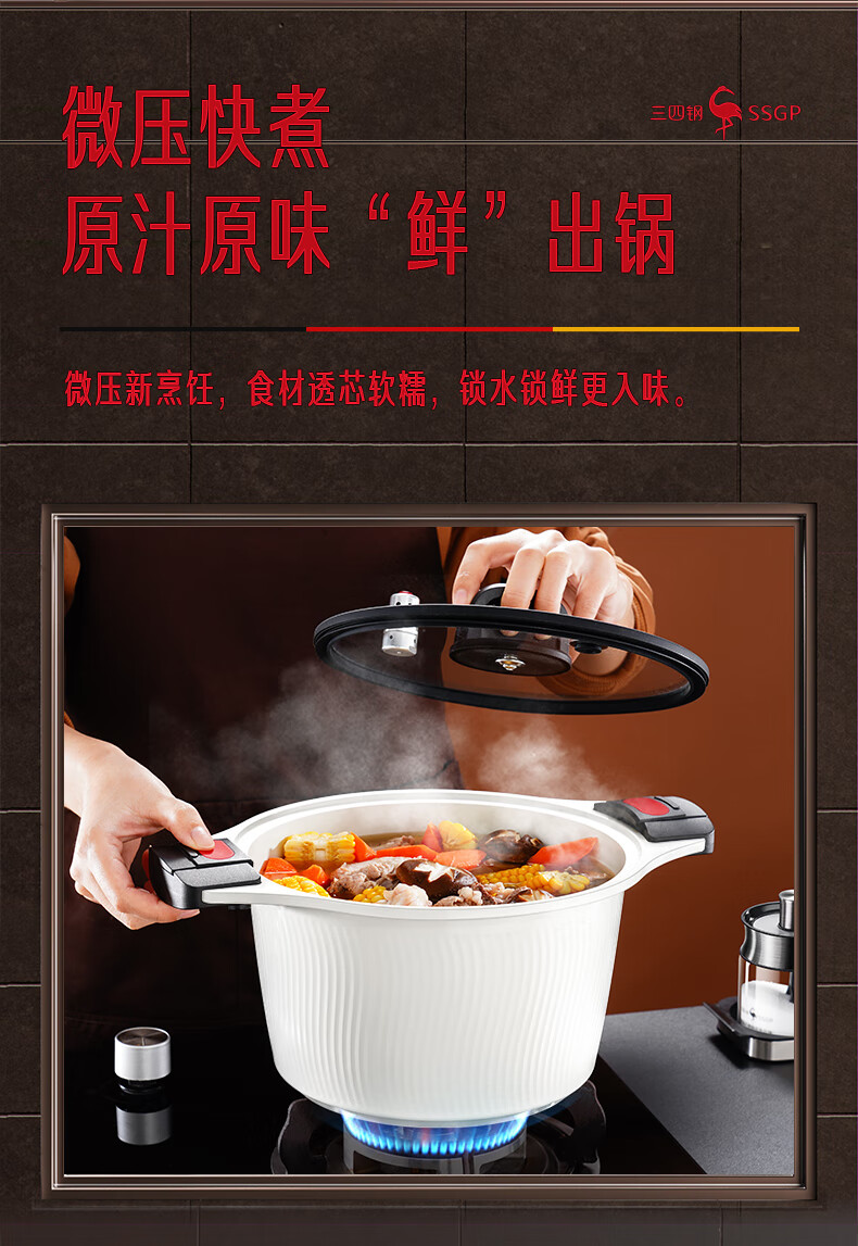 • 商品名称:三四钢®微压锅多功能汤锅陶瓷不粘炖锅煮粥煮汤燃气电磁炉专用24cm 27731 白玉微压锅:5.6L/个