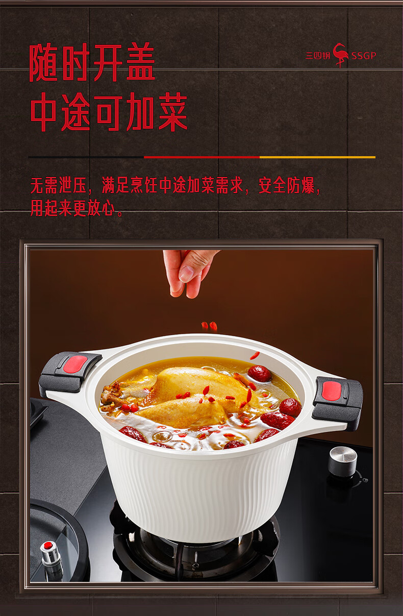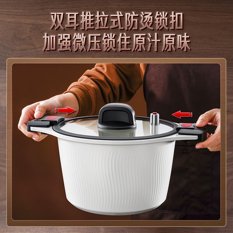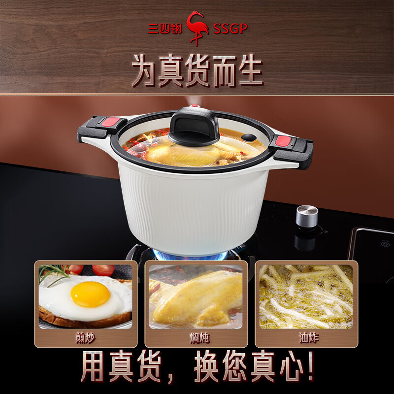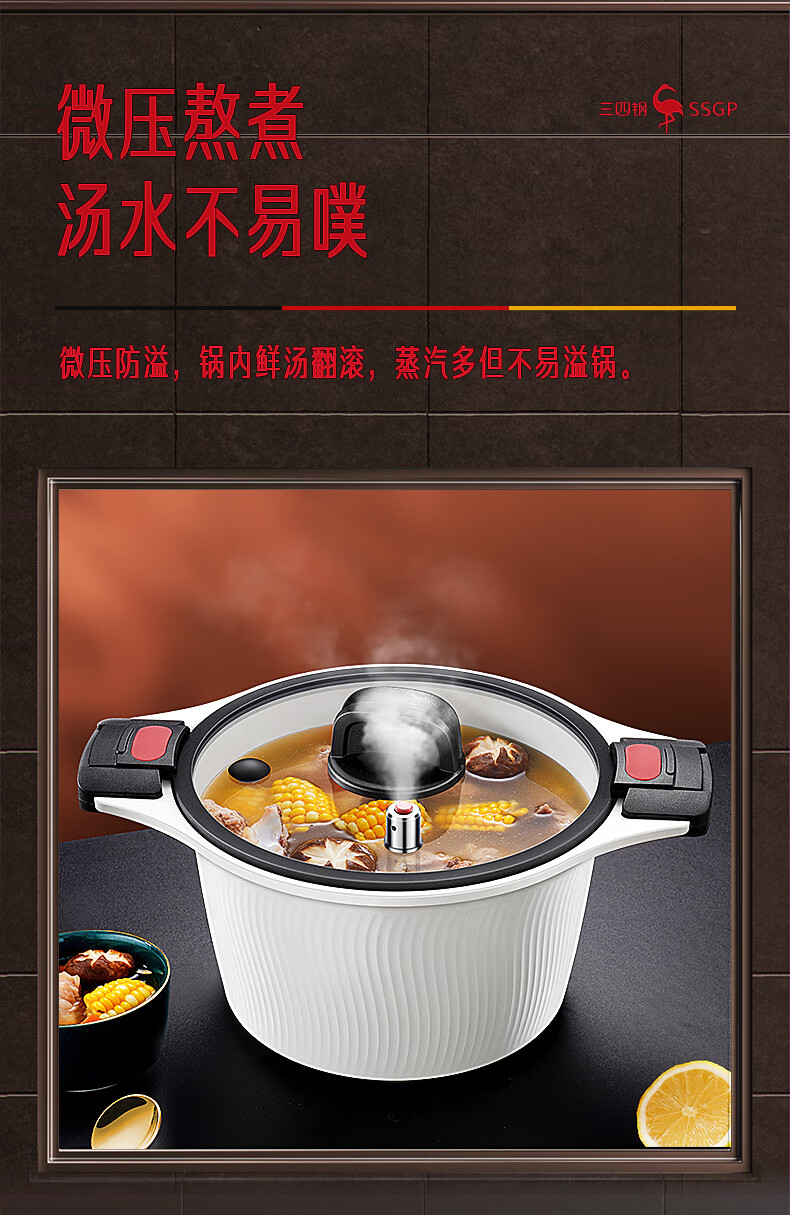 三四钢®微压锅多功能汤锅陶瓷不粘炖锅煮粥煮汤燃气电磁炉专用24cm 27731 白玉微压锅:5.6L/个