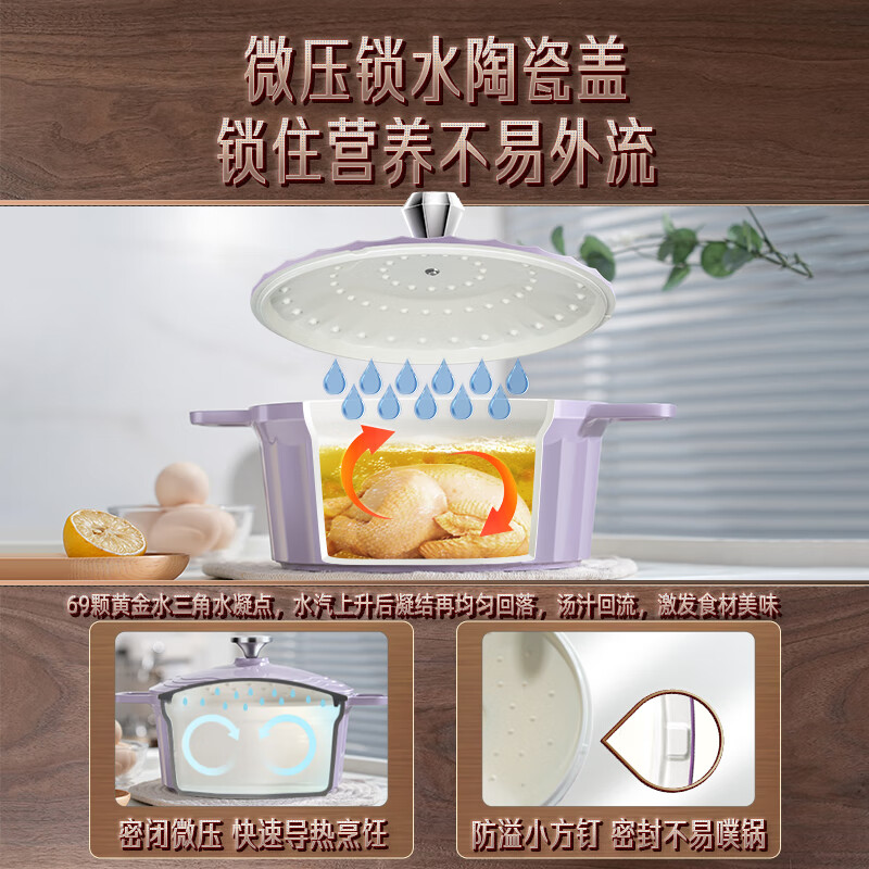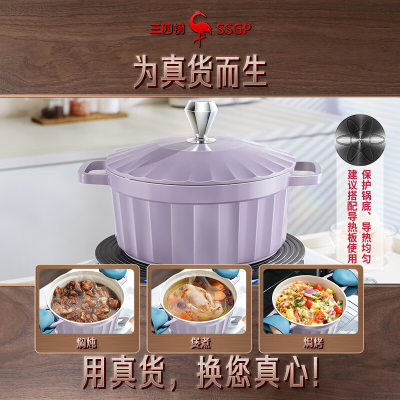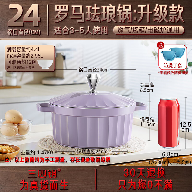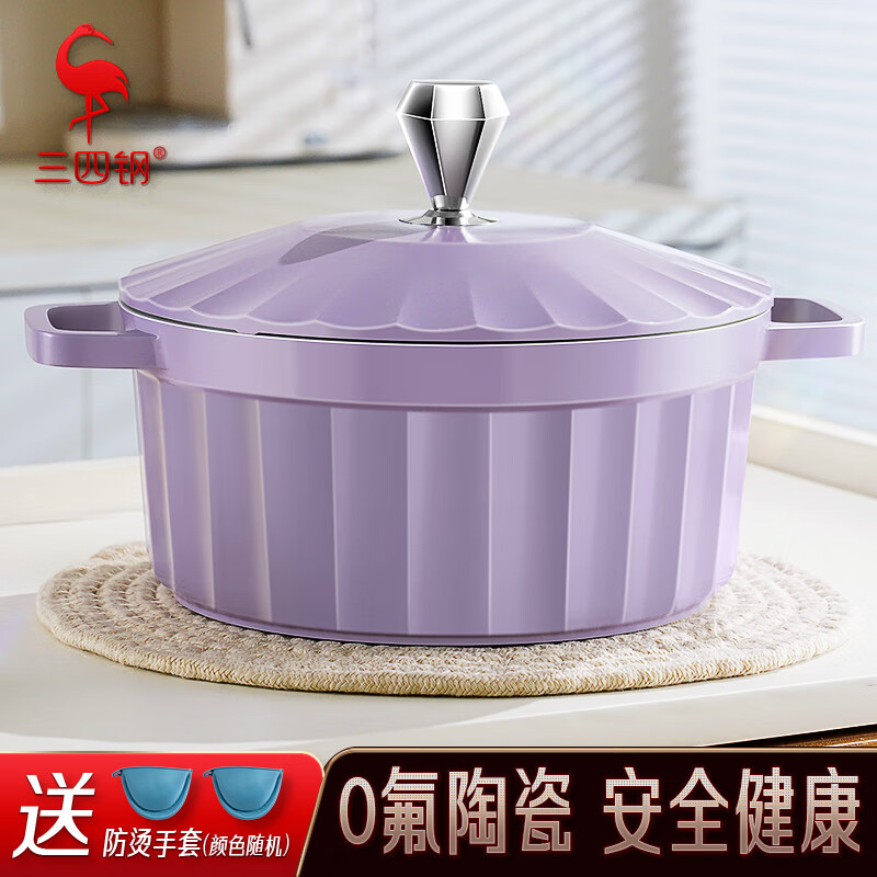 • 商品名称:三四钢®陶瓷汤锅珐琅锅炖锅微压煲汤炖肉锅家用不粘锅 33981 33981 Q罗马珐琅锅:罗兰紫24cm升级款/个