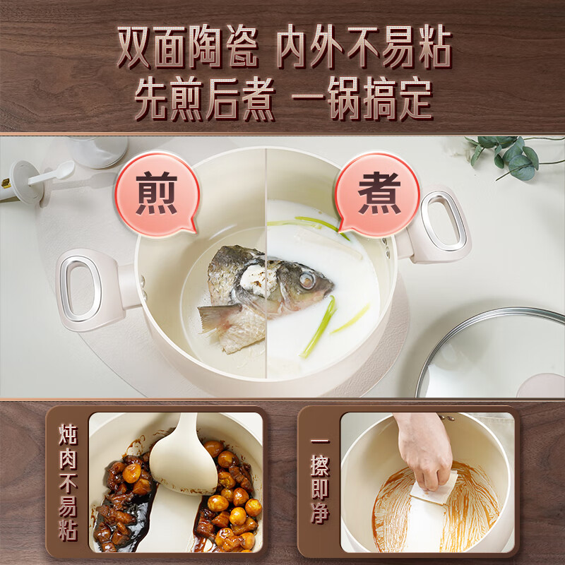 三四钢(SSGP)®汤锅煲汤煮粥炖锅陶瓷不粘锅家用大肚锅电磁炉燃气专用 31611 31611 暖瓷汤锅:20cm/个