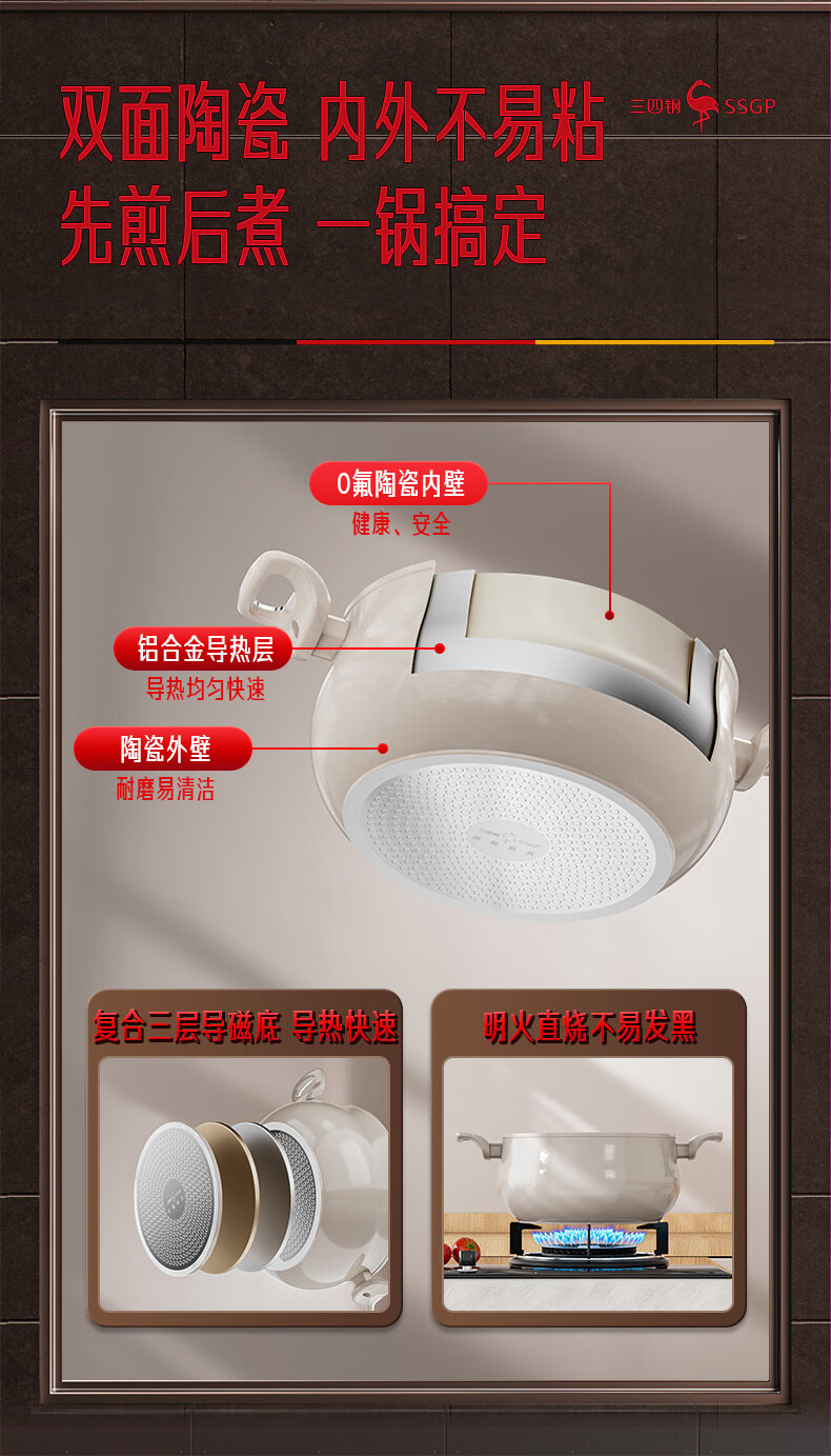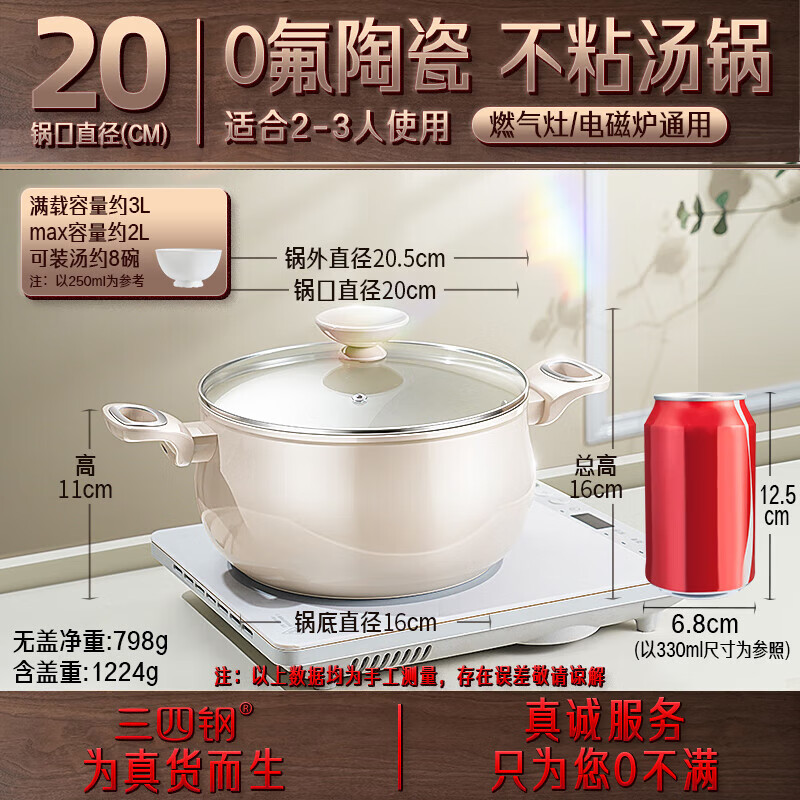 商品名称: 三四钢(SSGP)®汤锅煲汤煮粥炖锅陶瓷不粘锅家用大肚锅电磁炉燃气专用 31611 31611 暖瓷汤锅:20cm/个
