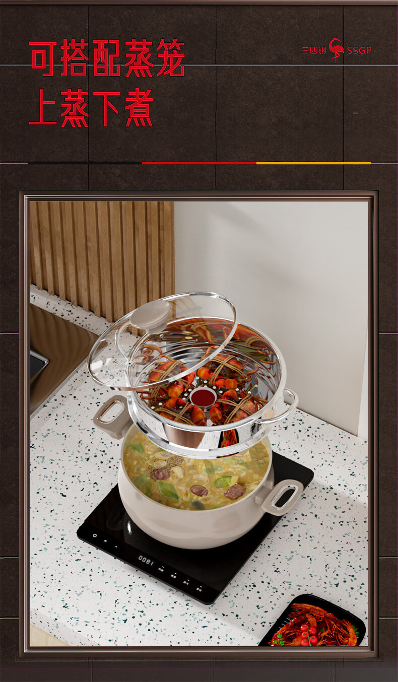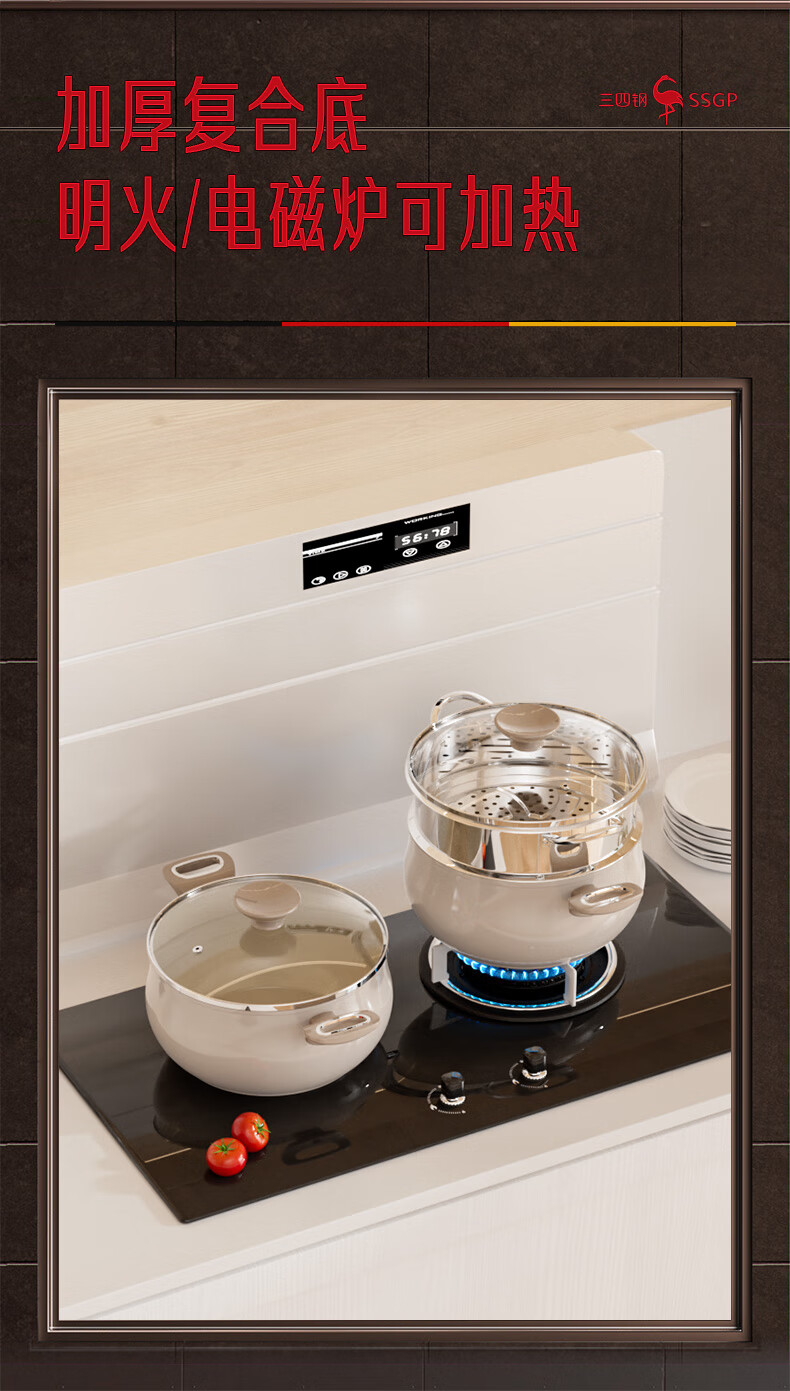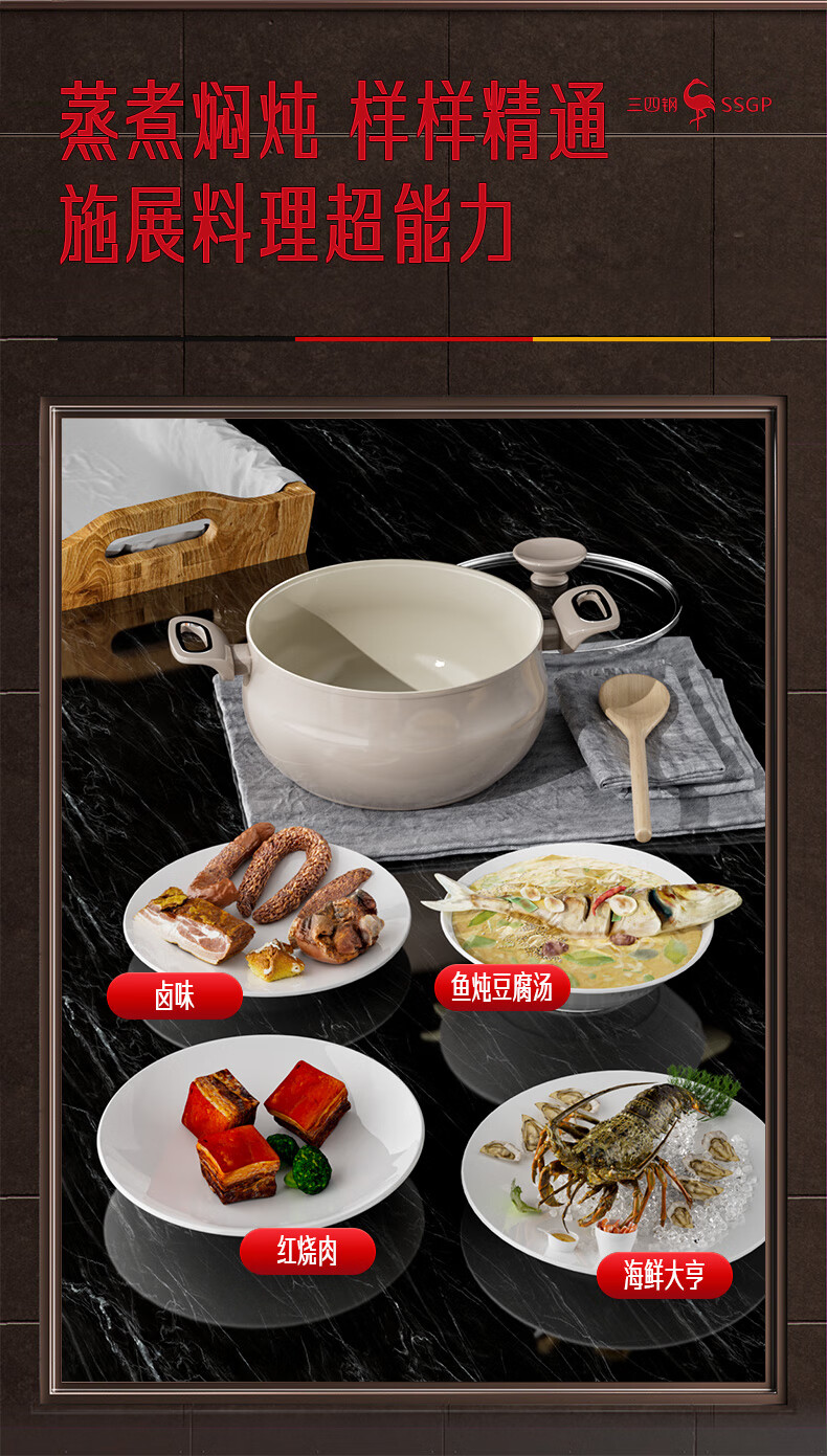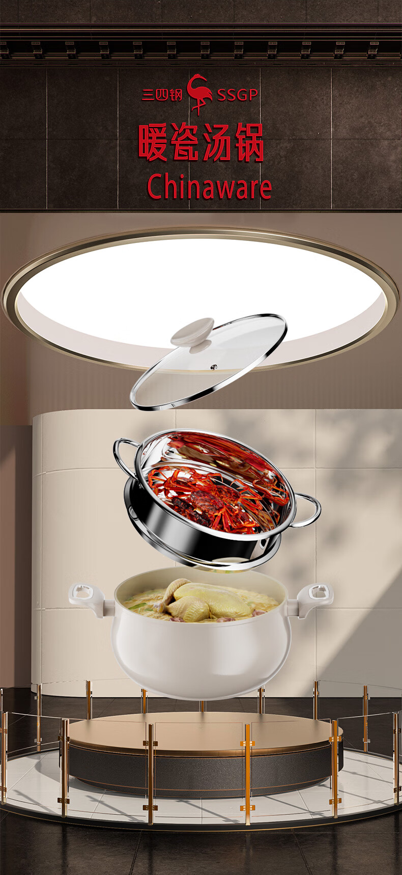 厨具  > 烹饪锅具  > 汤锅  >  三四钢  >  三四钢(SSGP)®汤锅煲汤煮粥炖锅陶瓷不粘锅家用大肚锅电磁炉燃气专用 31611 31611 暖瓷汤锅:20cm/个