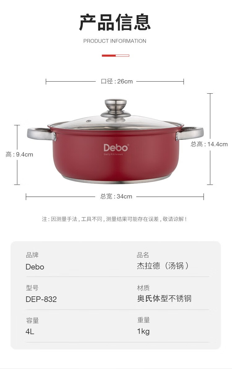 商品名称: Debo德铂杰拉德(汤锅)DEP-832颜色随机 DEP-832/个
