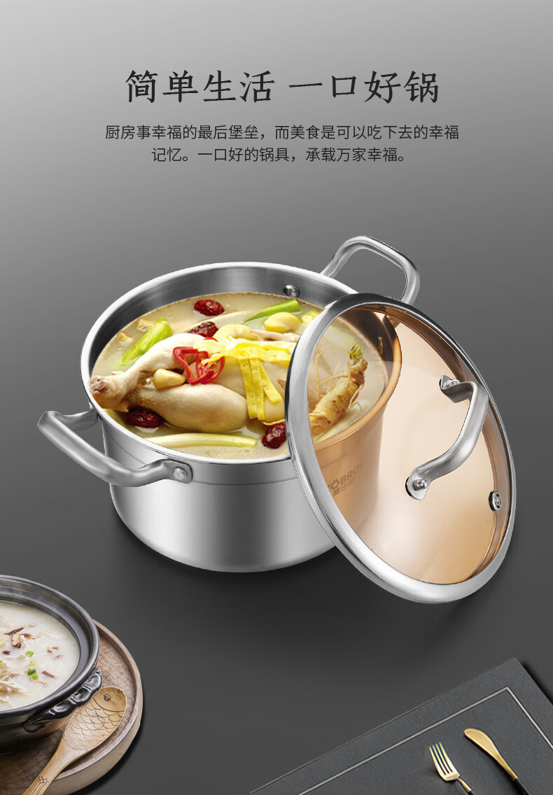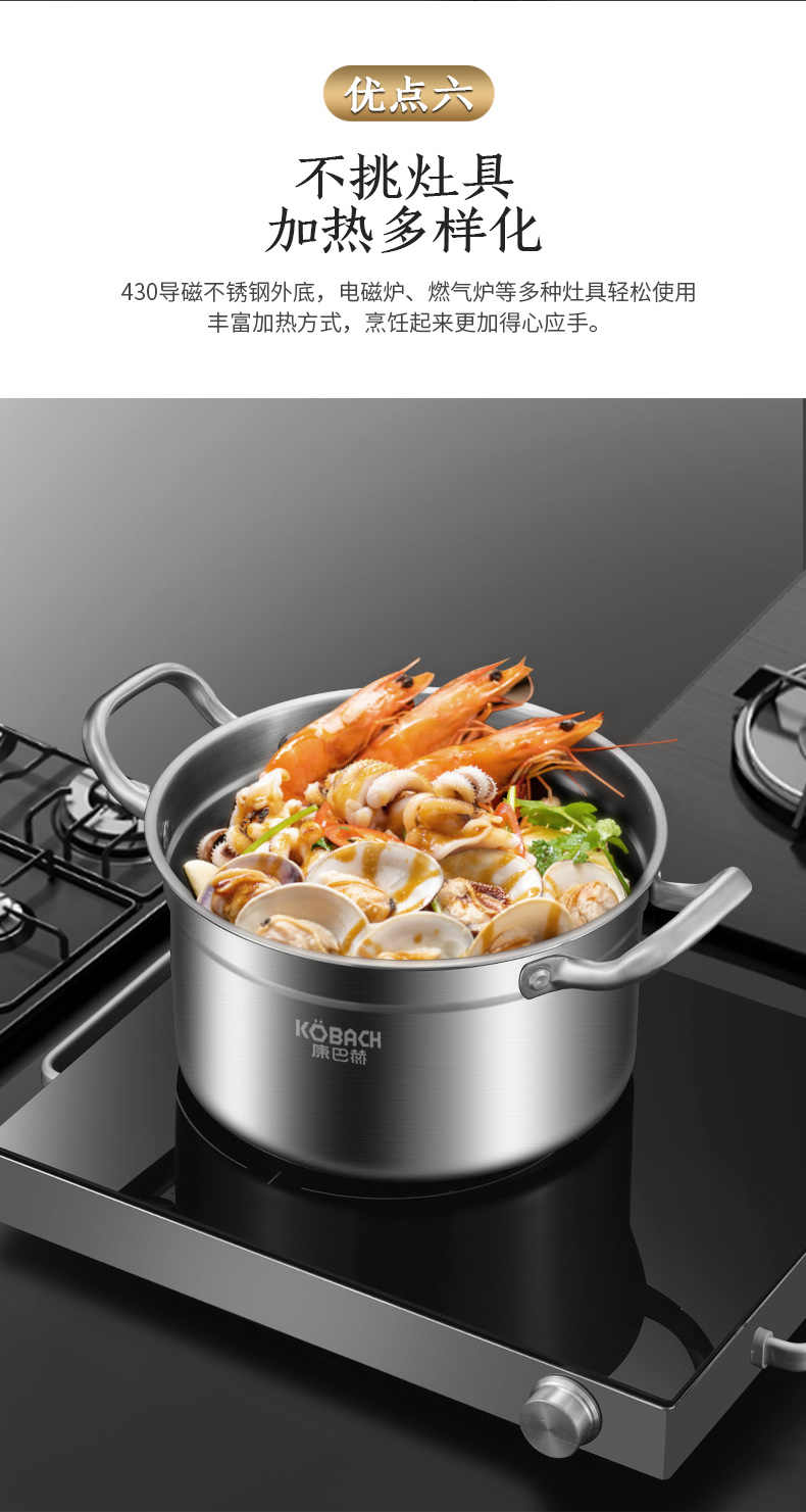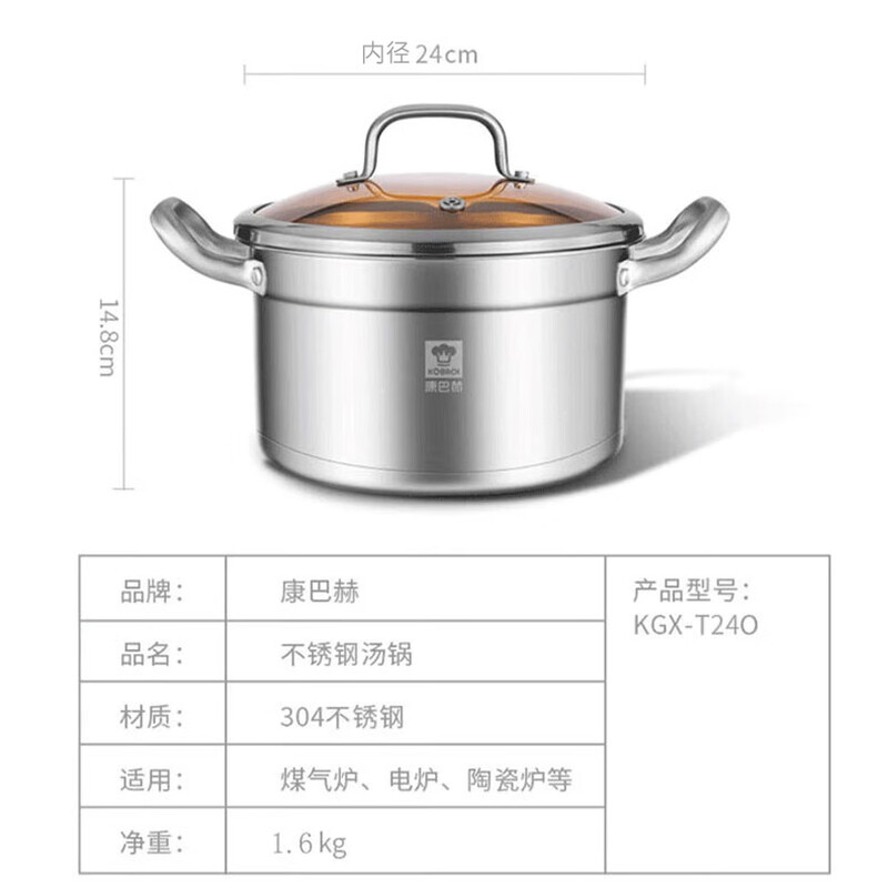 商品名称: 康巴赫汤锅304不锈钢煲汤锅双耳无涂层炖锅24cm电磁炉燃气灶通用 KGX-T24O/个