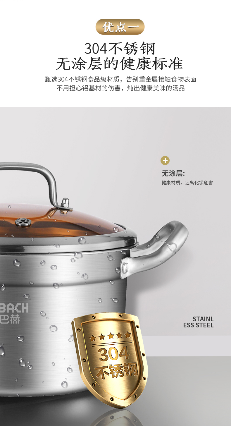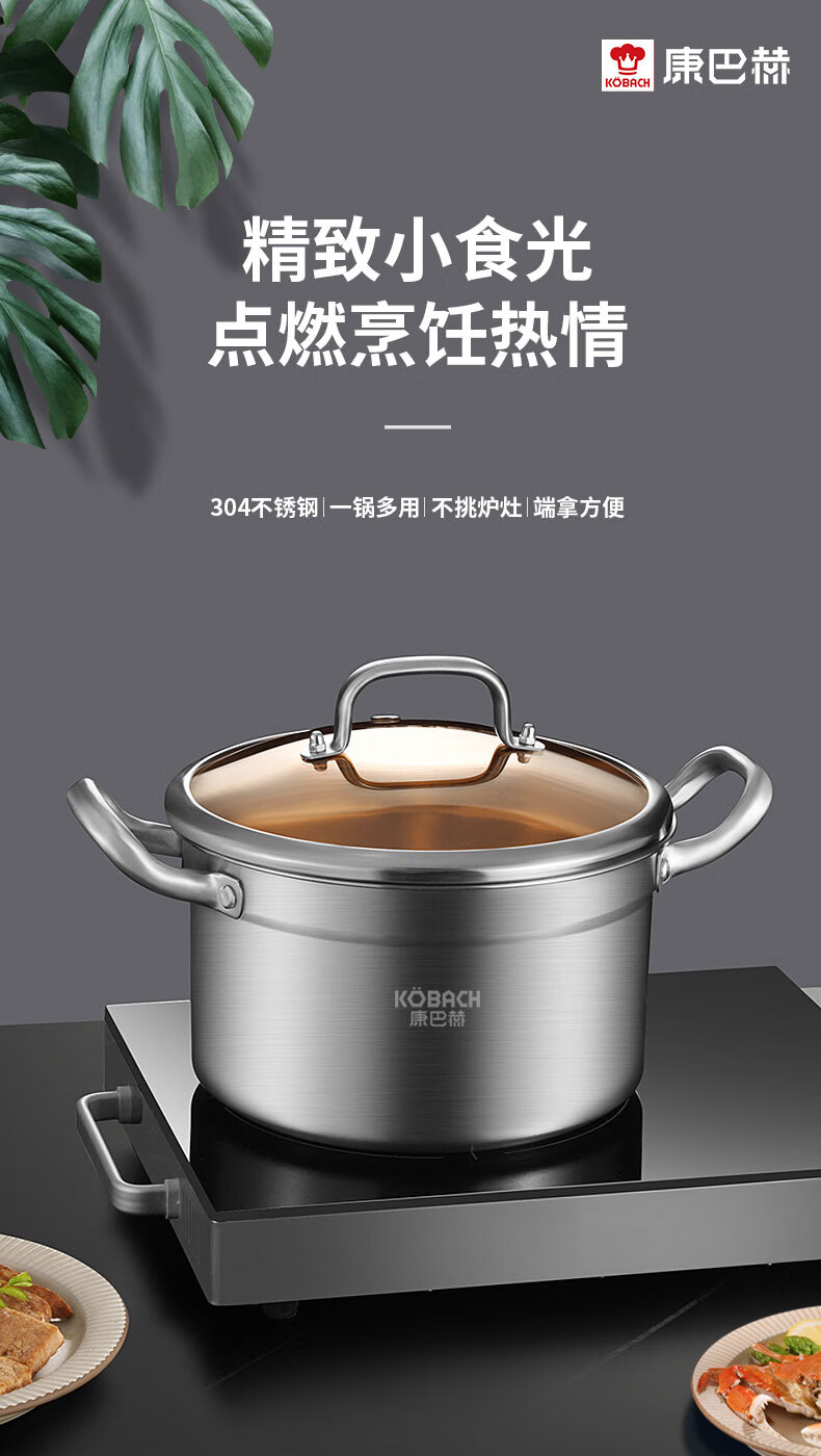 厨具  > 烹饪锅具  > 汤锅  >  康巴赫/KBH  >  康巴赫汤锅304不锈钢煲汤锅双耳无涂层炖锅24cm电磁炉燃气灶通用 KGX-T24O/个