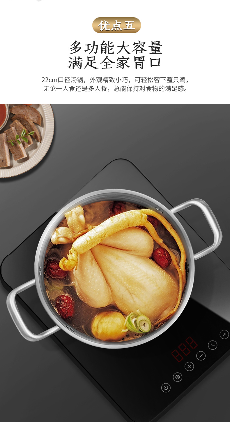 • 商品名称:康巴赫汤锅304不锈钢煲汤锅双耳无涂层炖锅24cm电磁炉燃气灶通用 KGX-T24O/个