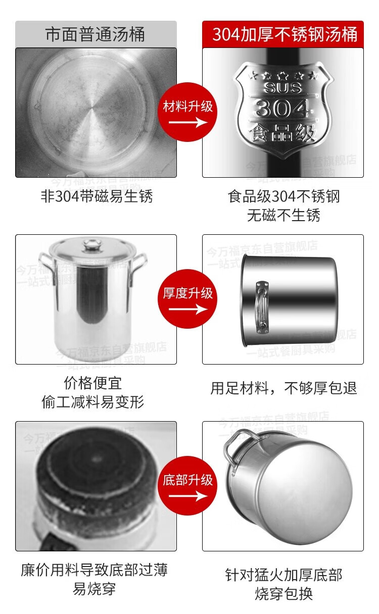 商品名称: 今万福304不锈钢桶汤锅圆桶带盖大容量汤桶 特厚304不锈钢汤桶40cm 今万福/个