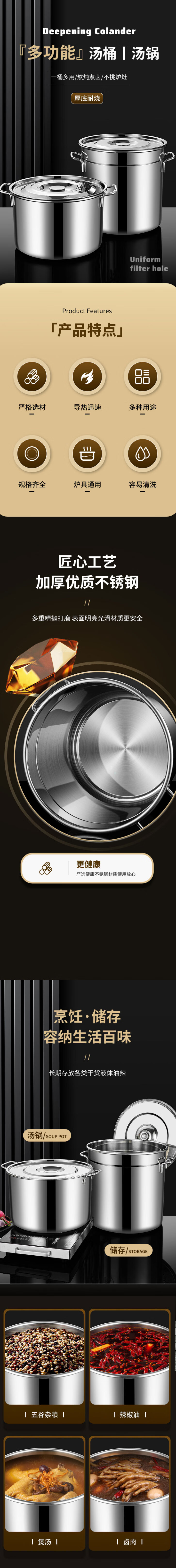 • 商品名称:Homeglen不锈钢桶圆桶带盖商用汤桶卤水桶油桶大容量加厚家用汤锅 30cm 汤锅/套
