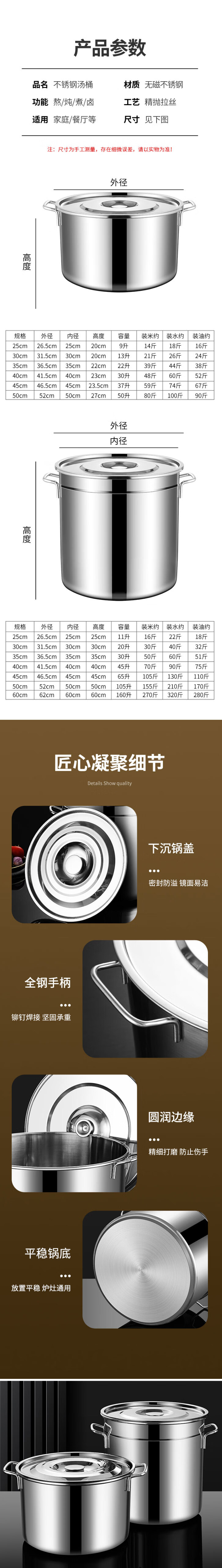 • 商品名称:Homeglen不锈钢桶圆桶带盖商用汤桶卤水桶油桶大容量加厚家用汤锅 45cm 汤锅/套