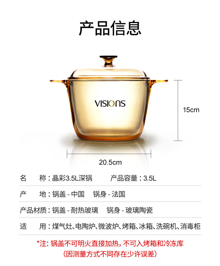• 商品名称:康宁(VISIONS)餐具 3.5L晶彩透明锅深锅 晶彩系列3.5L深锅成品 20.5cm VISIONS晶彩系列透明锅深锅--3.5L/个