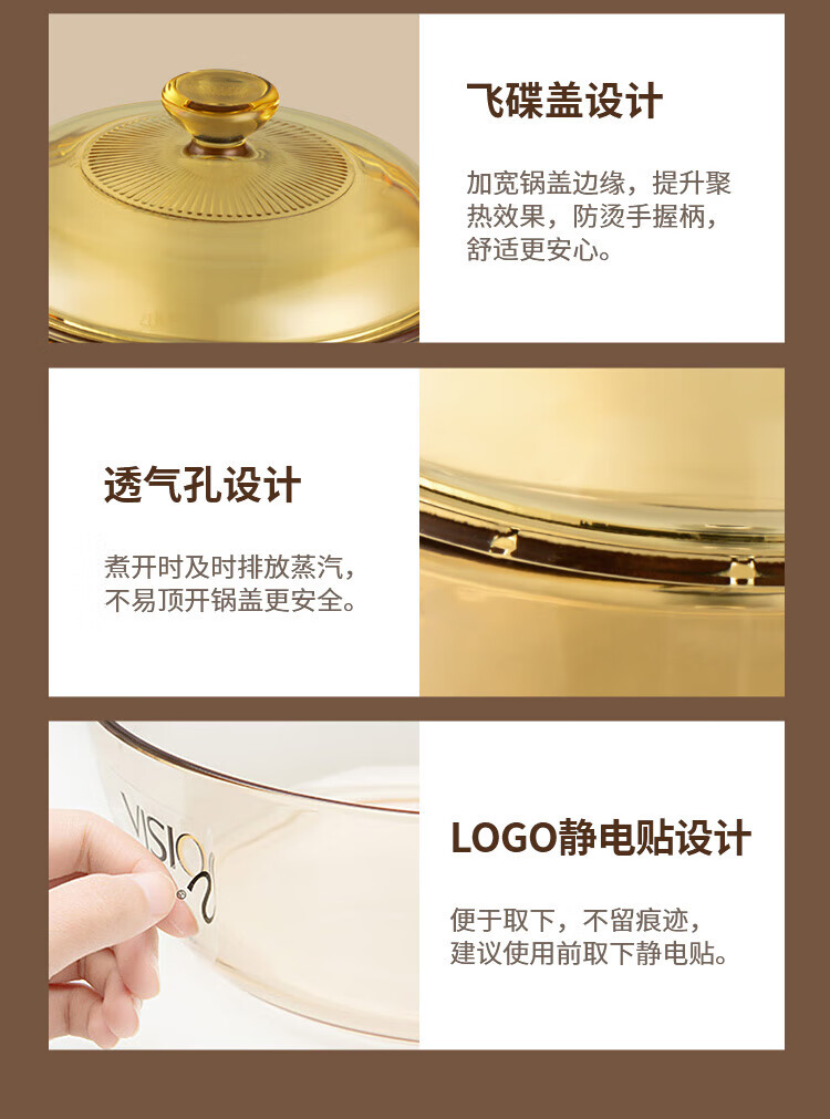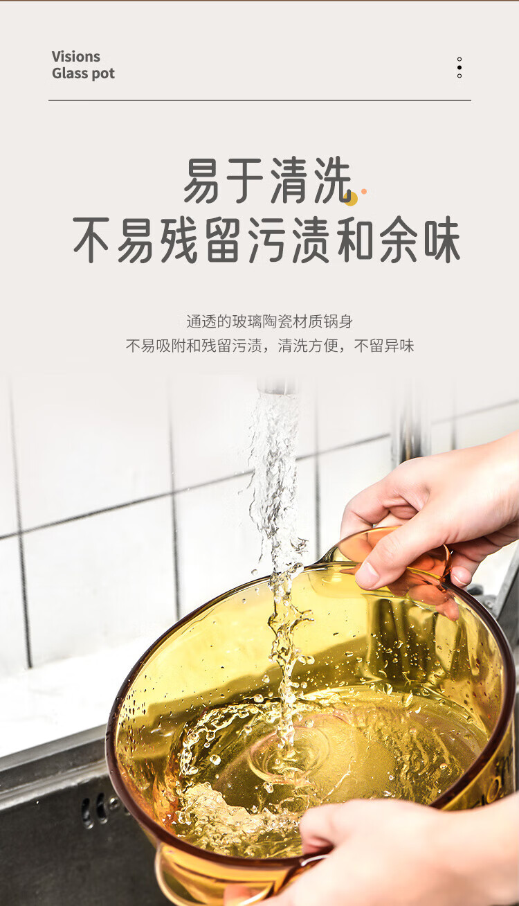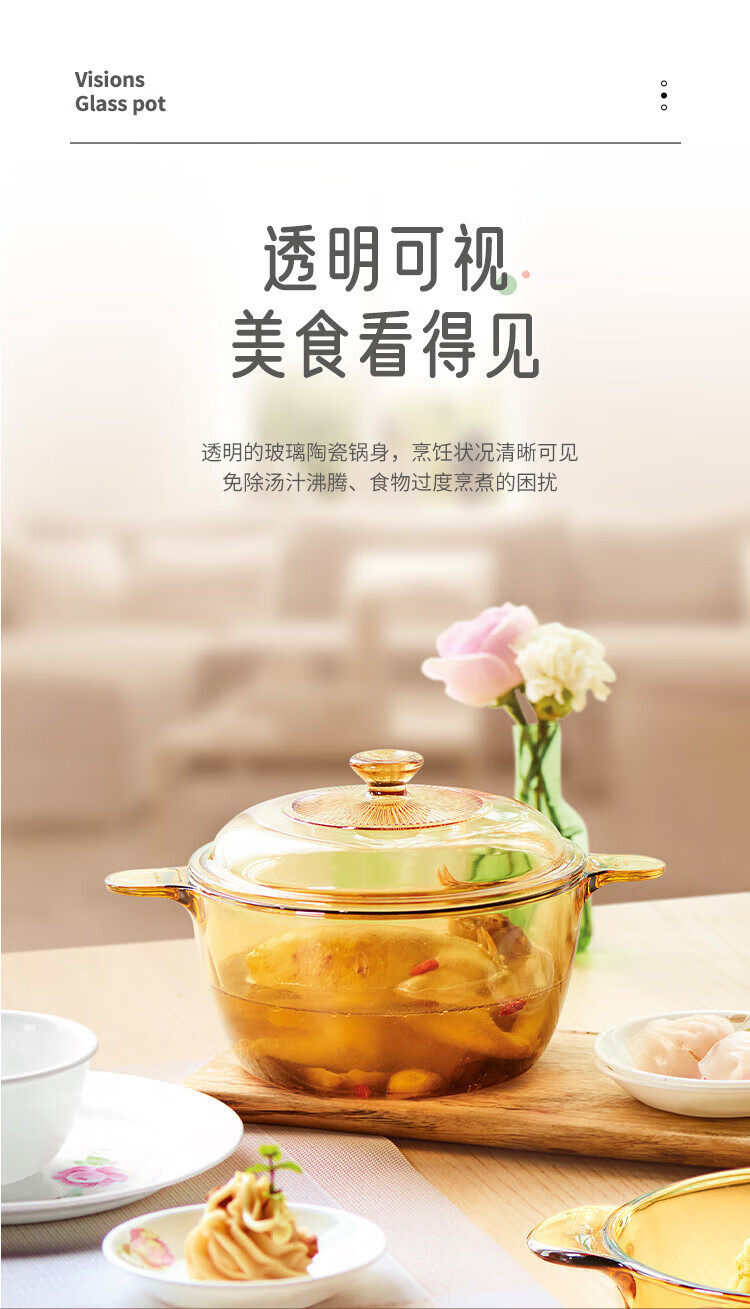 • 商品名称:康宁(VISIONS)玻璃煲汤锅 家用炖熬煮汤锅 美国康宁双耳晶彩透明 1.5L深锅 18cm VISIONS晶彩系列透明锅--1.5L/个