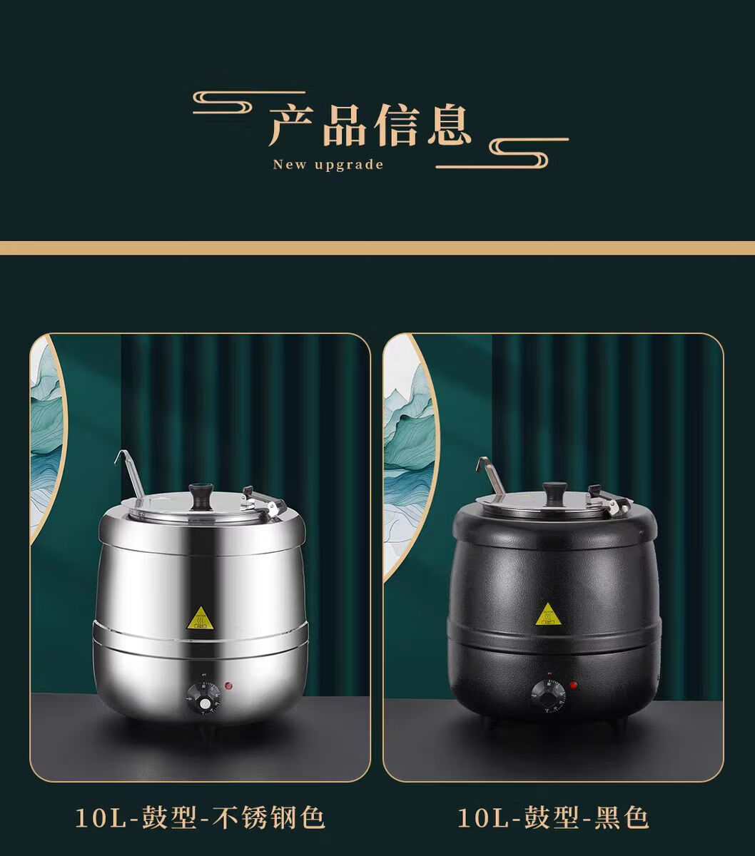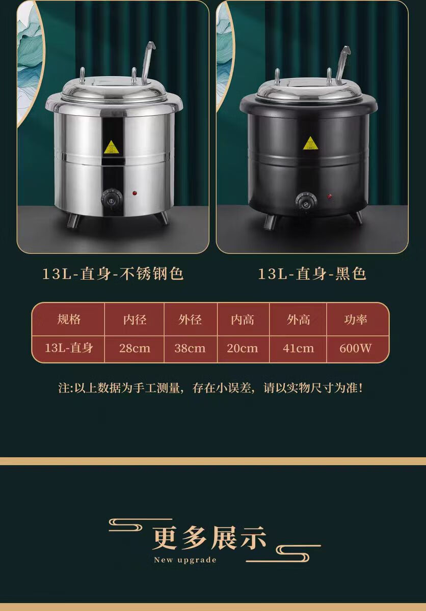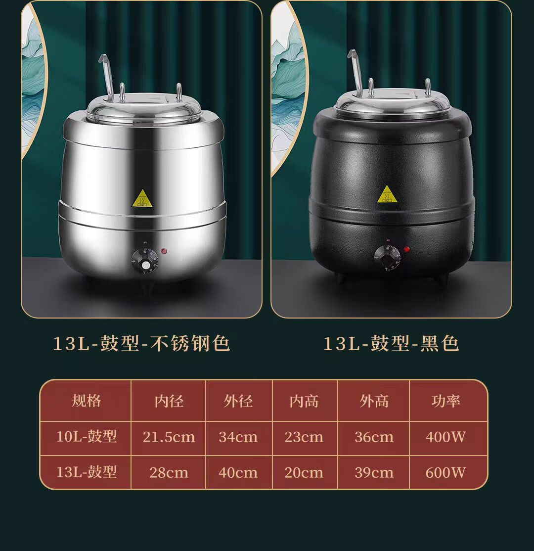 • 商品名称:NHZHIW 不锈钢内胆酒店自助餐汤粥保温锅电热桶商用 钢色直身13升小口盖 13升小口盖/台