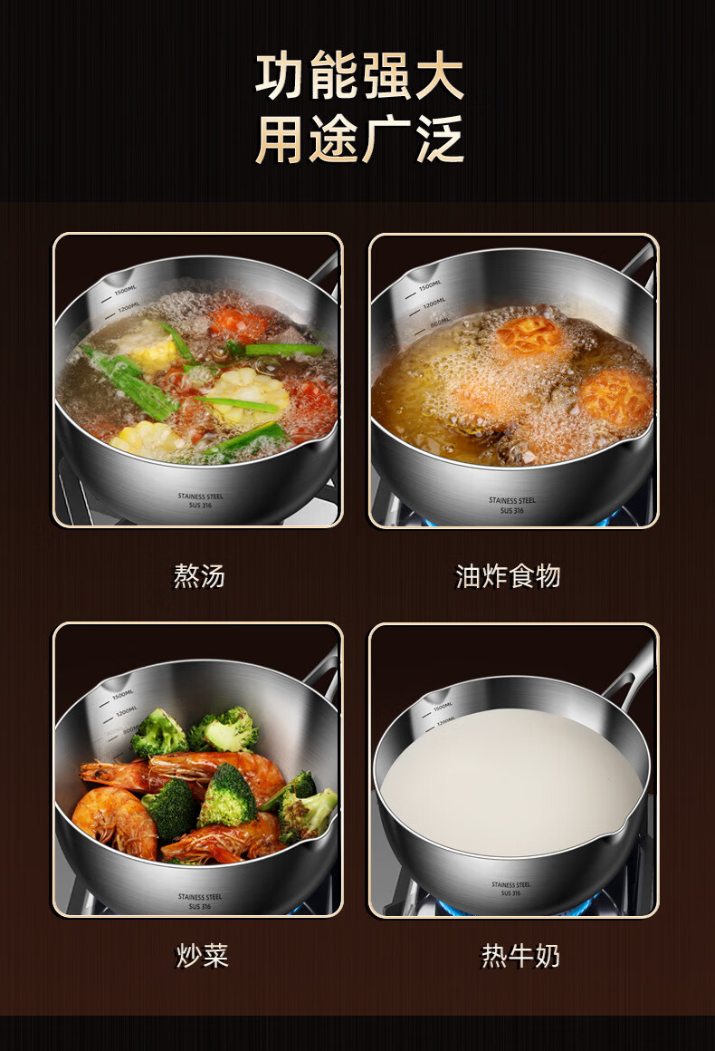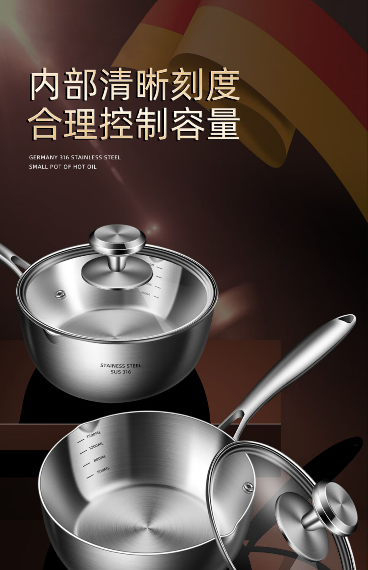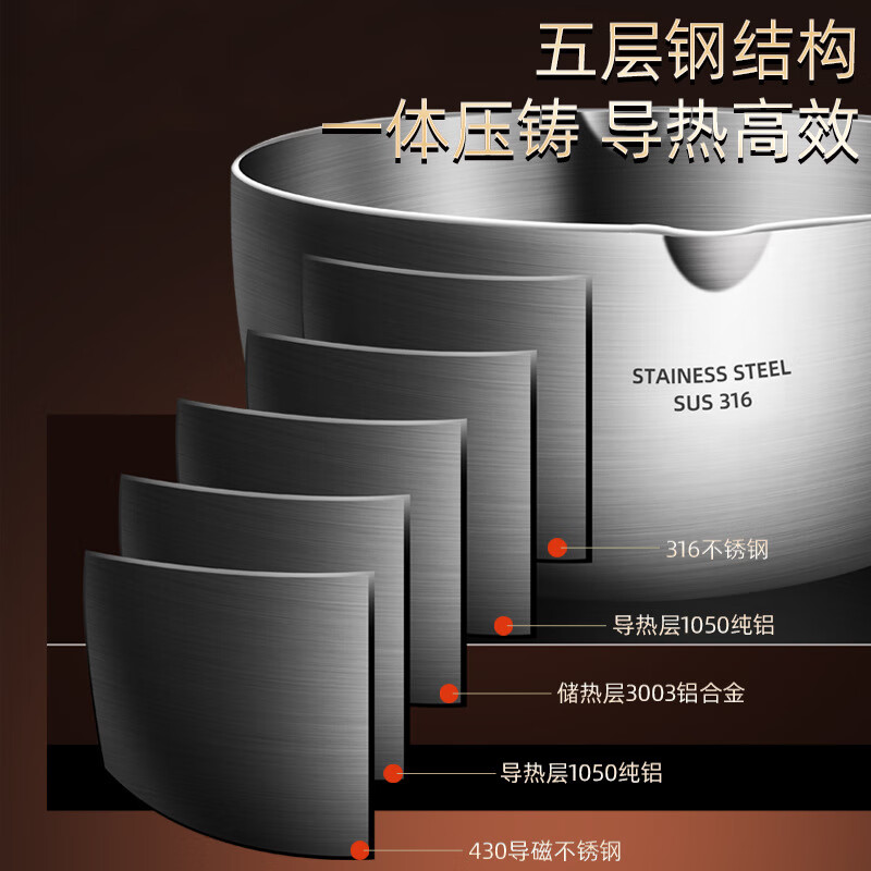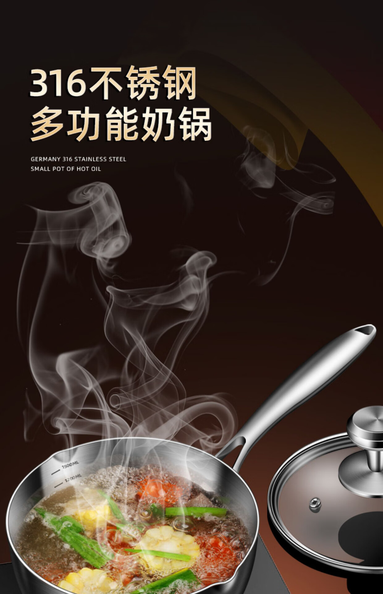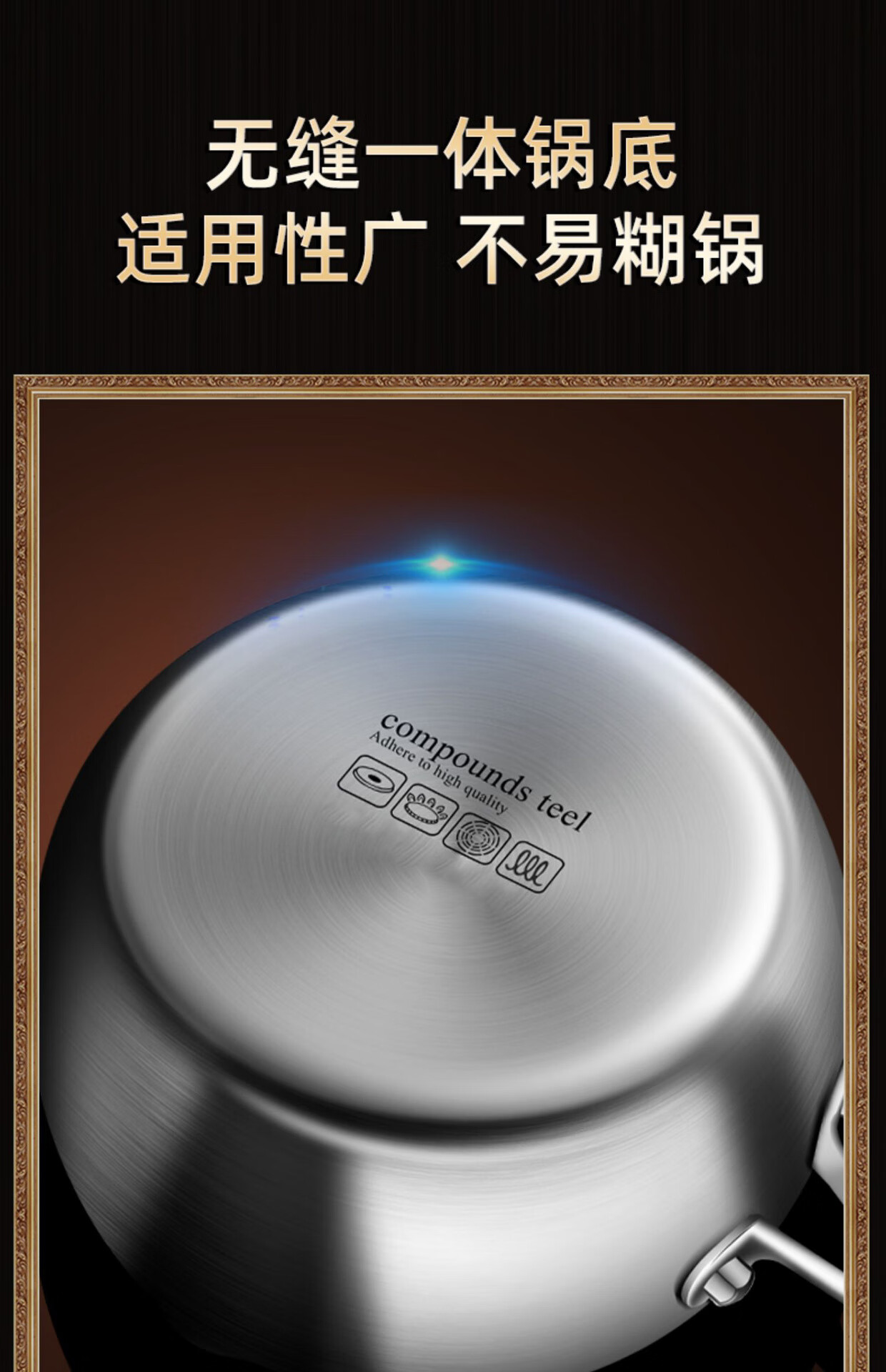 HUIHUADU316不锈钢奶锅宝宝辅食锅汤锅【镜面款】18cm单锅(带盖) 18cm单锅(带盖)/个