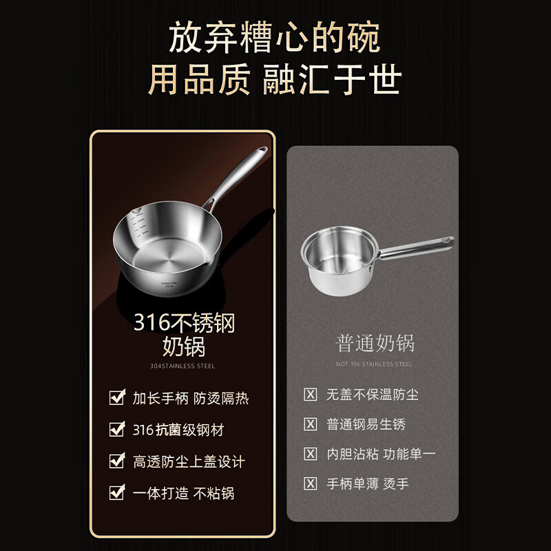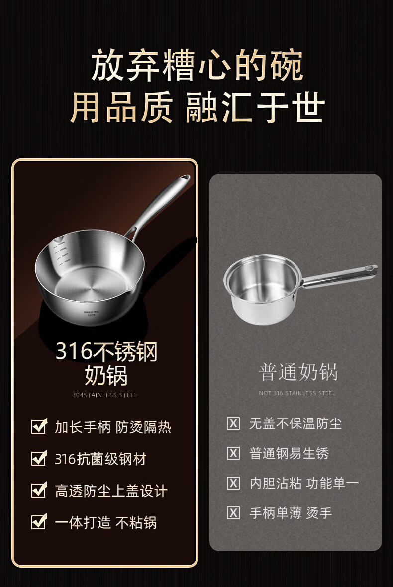 厨具  > 烹饪锅具  > 汤锅  >  HUIHUADU  >  HUIHUADU316不锈钢奶锅宝宝辅食锅汤锅【镜面款】18cm单锅(带盖) 18cm单锅(带盖)/个