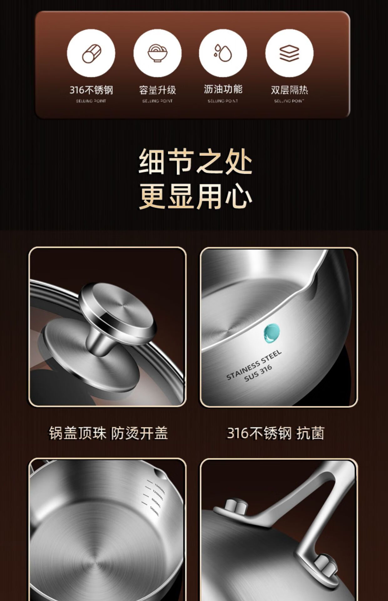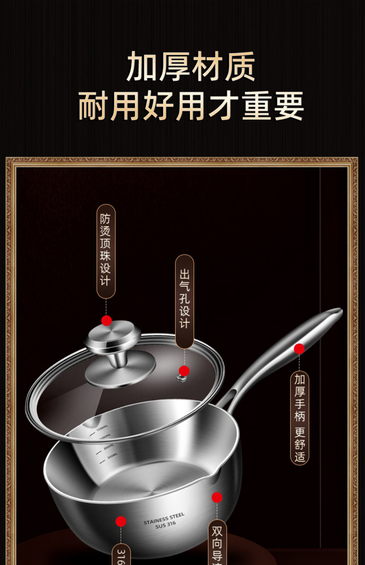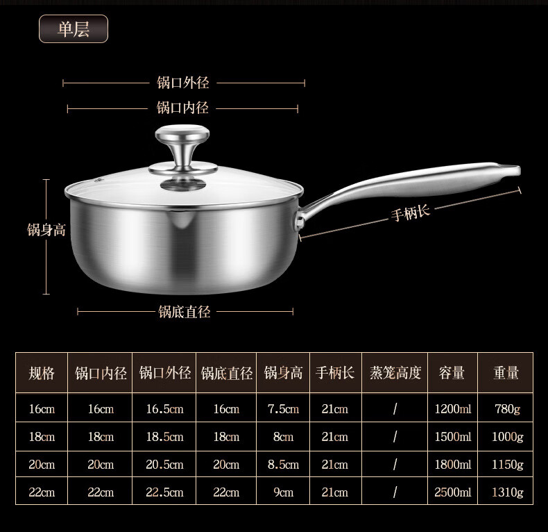 • 商品名称:HUIHUADU316不锈钢奶锅宝宝辅食锅汤锅【镜面款】18cm单锅(带盖) 18cm单锅(带盖)/个
