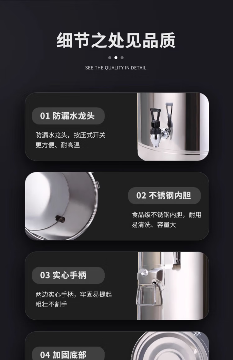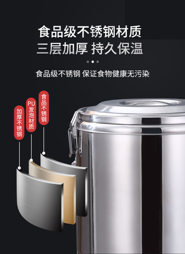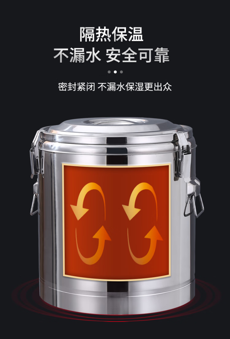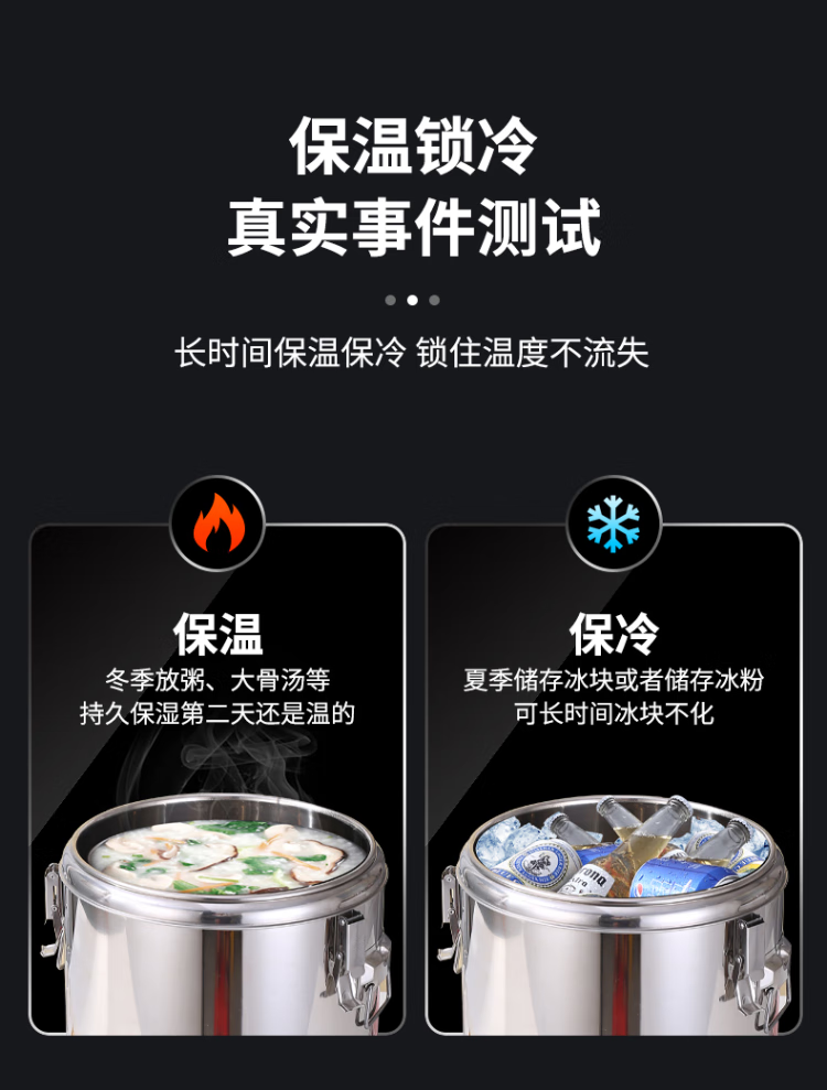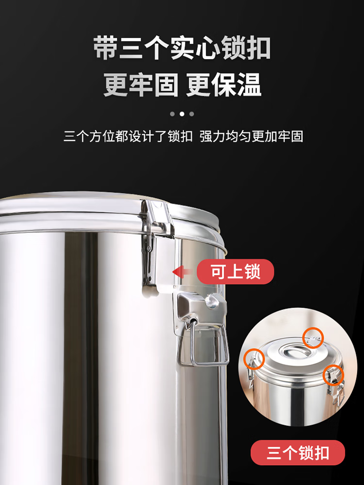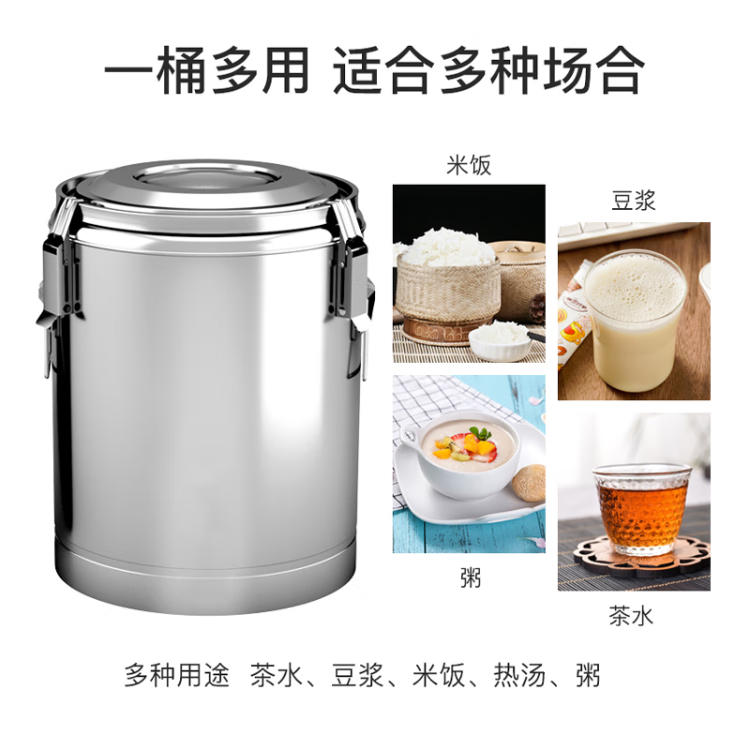 • 商品名称:星墨凡 不锈钢保温桶豆浆饮料保温保冰大容量保温饭桶食堂汤桶30L 不锈钢保温桶/个