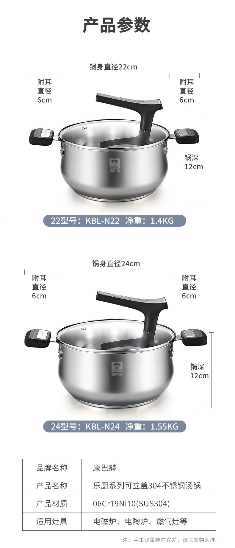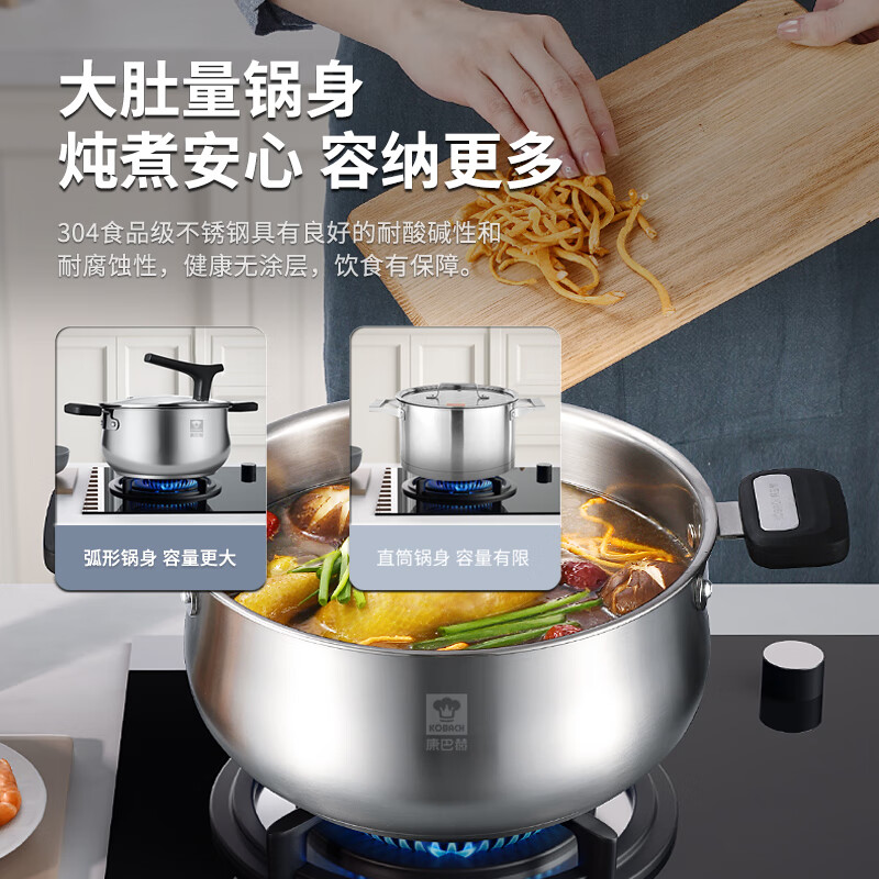 商品名称: 康巴赫汤锅304不锈钢汤锅汤煲24cm 加厚复合底电磁炉燃气灶通用 KBL-N24/个