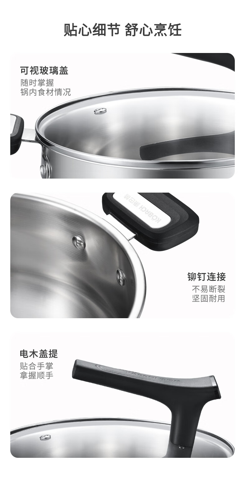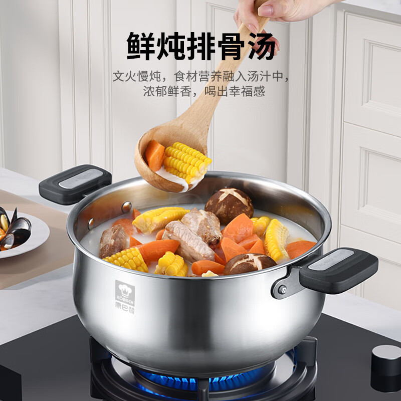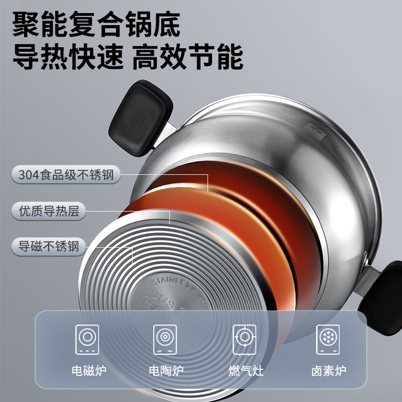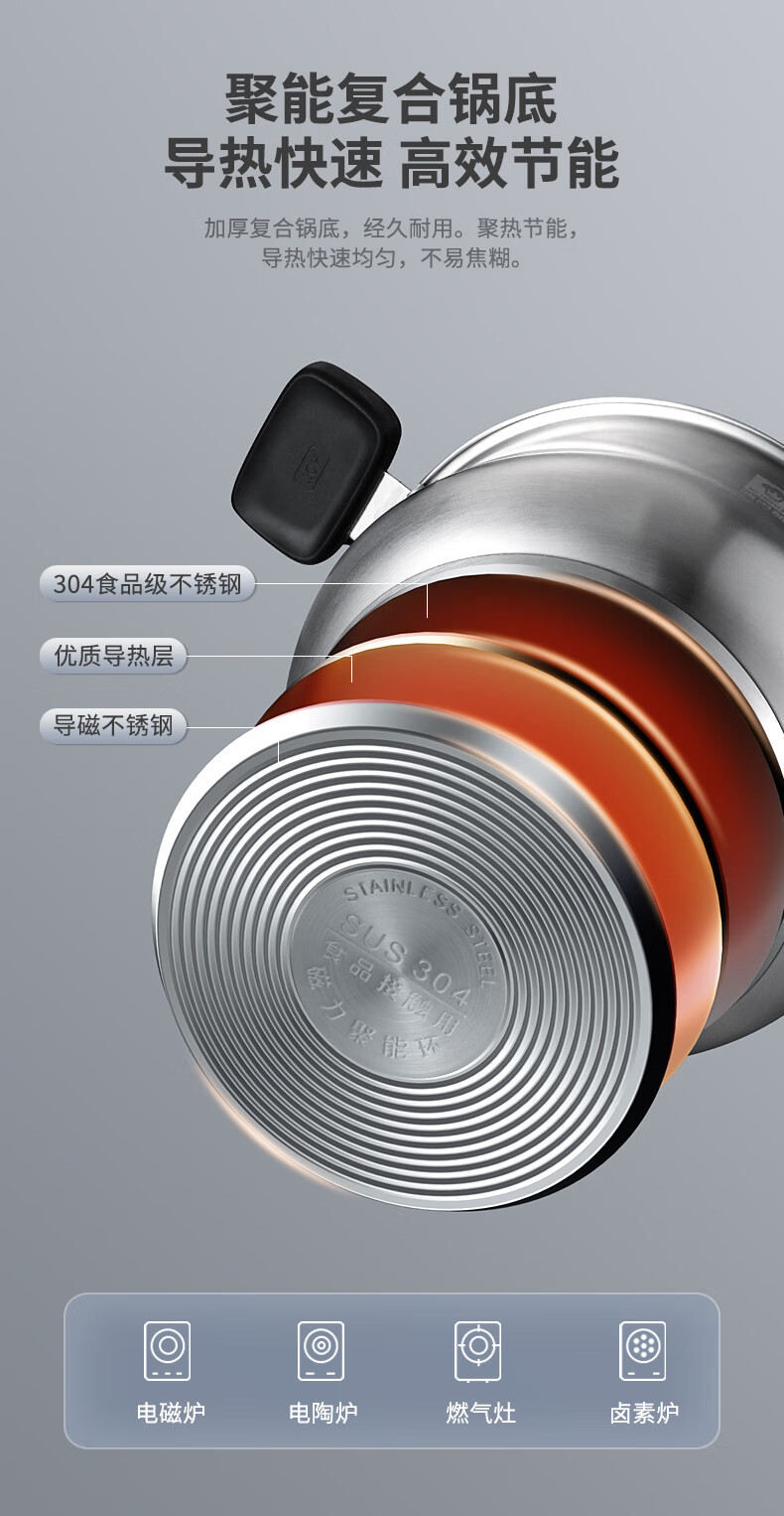 康巴赫汤锅304不锈钢汤锅汤煲24cm 加厚复合底电磁炉燃气灶通用 KBL-N24/个