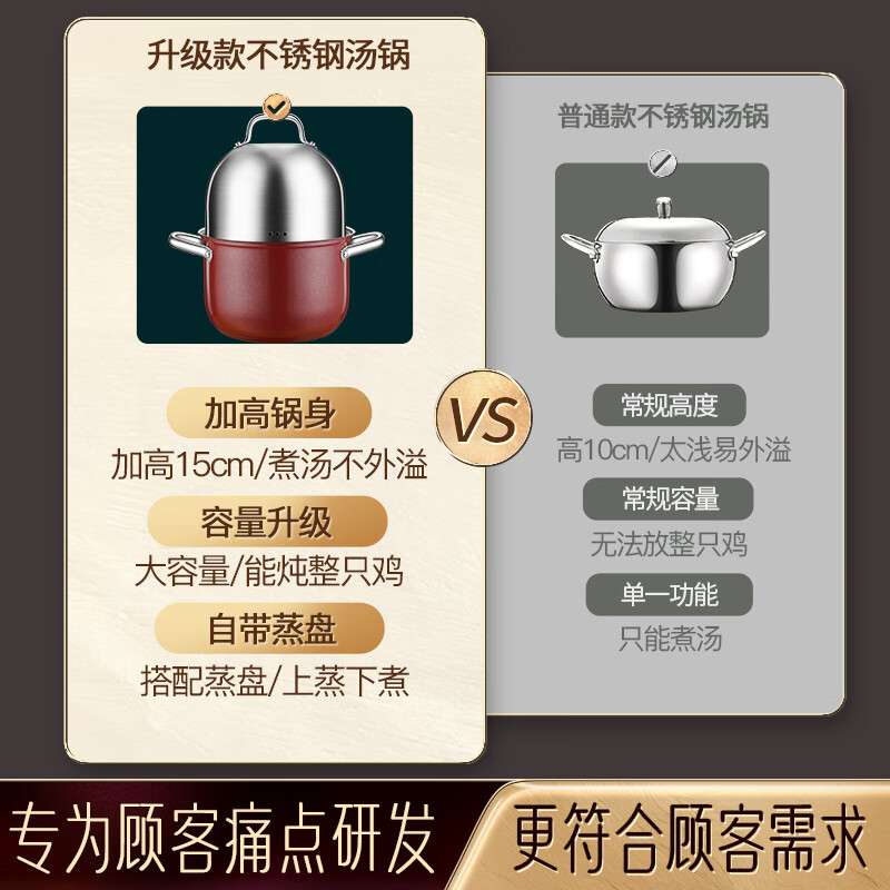 商品名称: SSN不锈钢汤锅3-4人煮粥锅304不锈钢蒸锅小蒸锅燃气灶家用汤锅煮面锅 36261/个