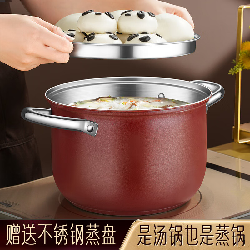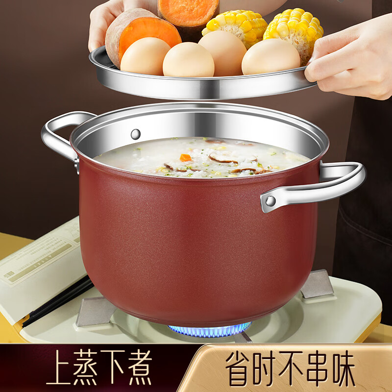 SSN不锈钢汤锅3-4人煮粥锅304不锈钢蒸锅小蒸锅燃气灶家用汤锅煮面锅 36261/个