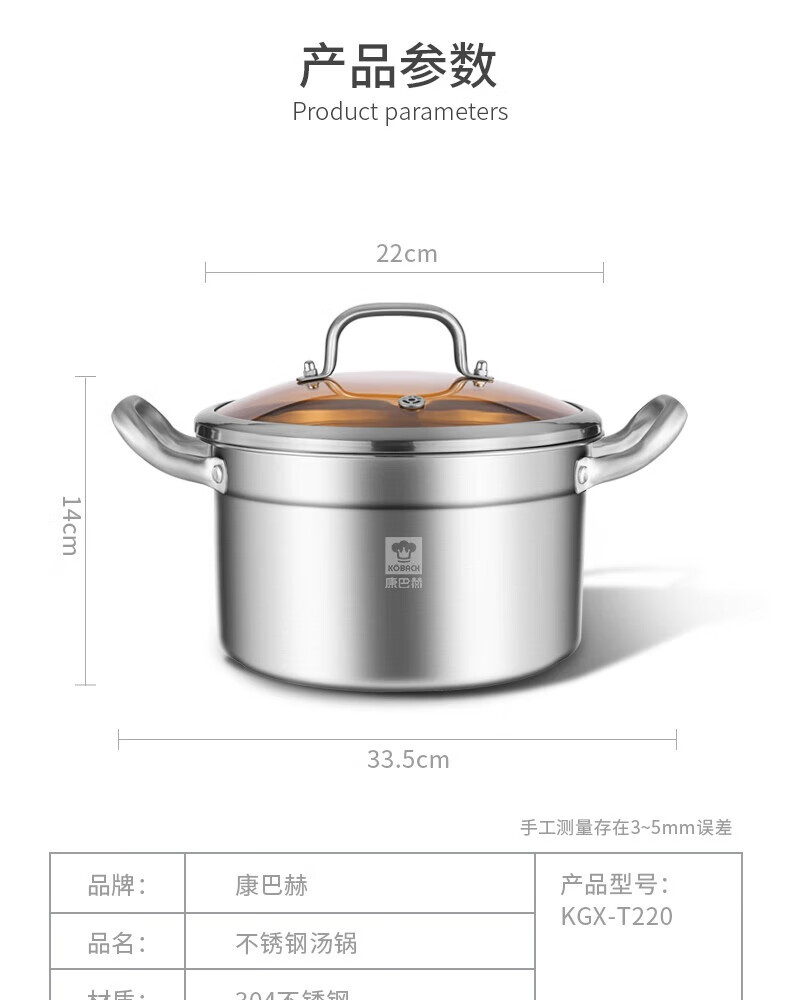 商品名称: 康巴赫-新欧式 304汤锅-套装22cm 304汤锅-套装22cm/个