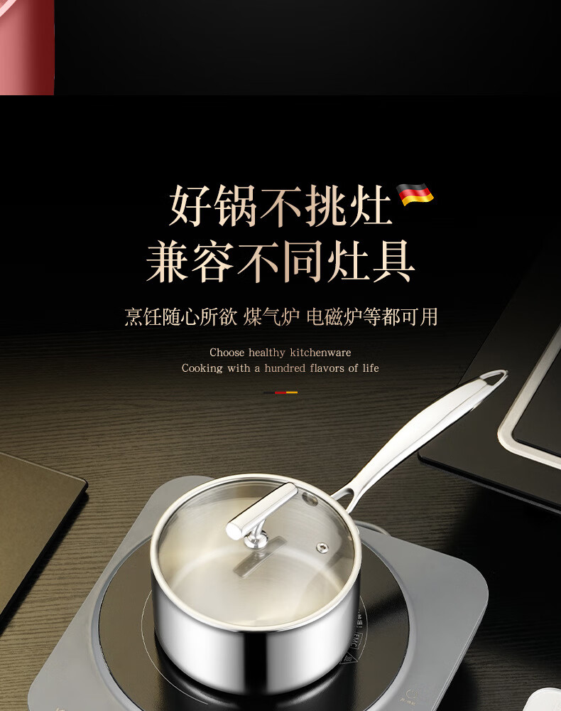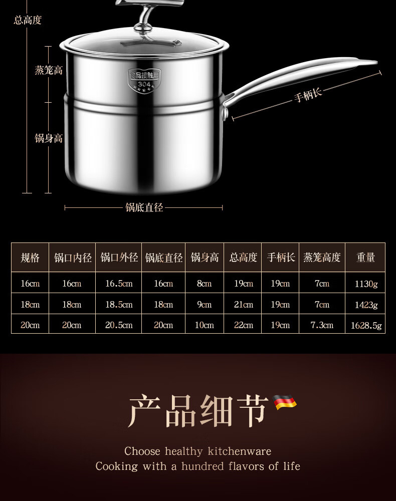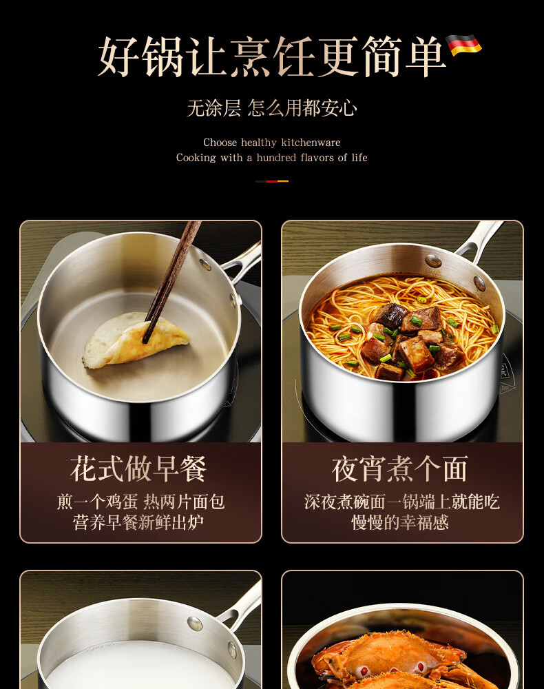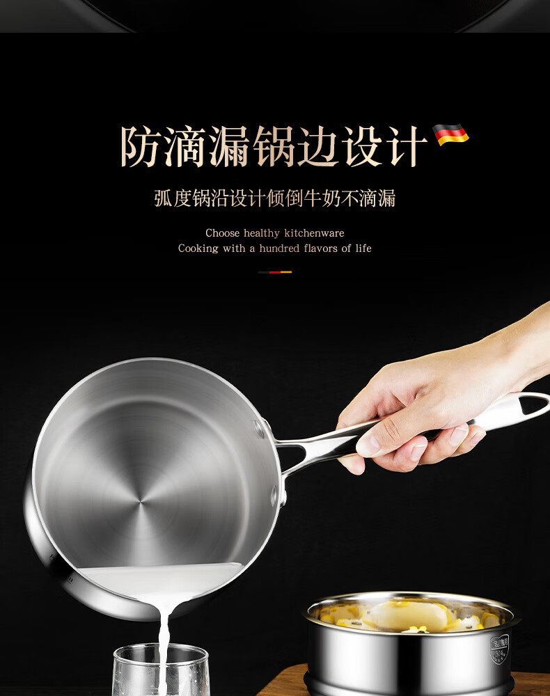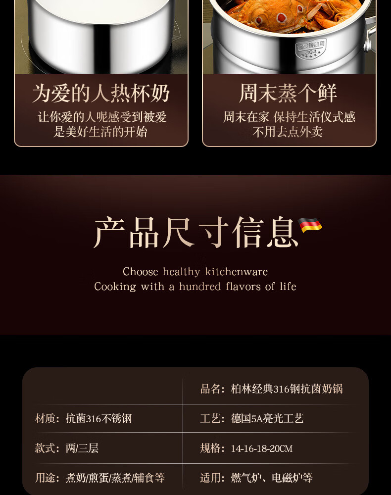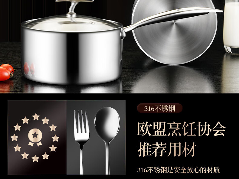• 商品名称:HUIHUADU316不锈钢奶锅无涂层【德系工艺】316抗菌五层钢18cm奶锅+304蒸笼 奶锅/个