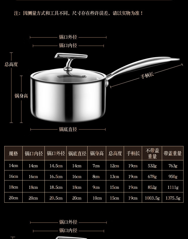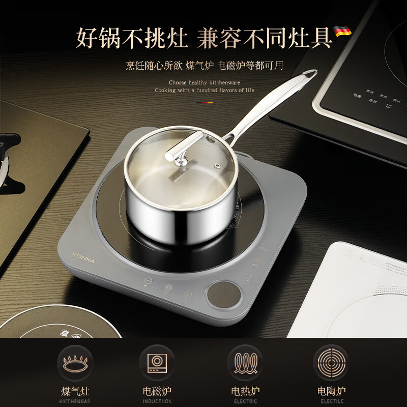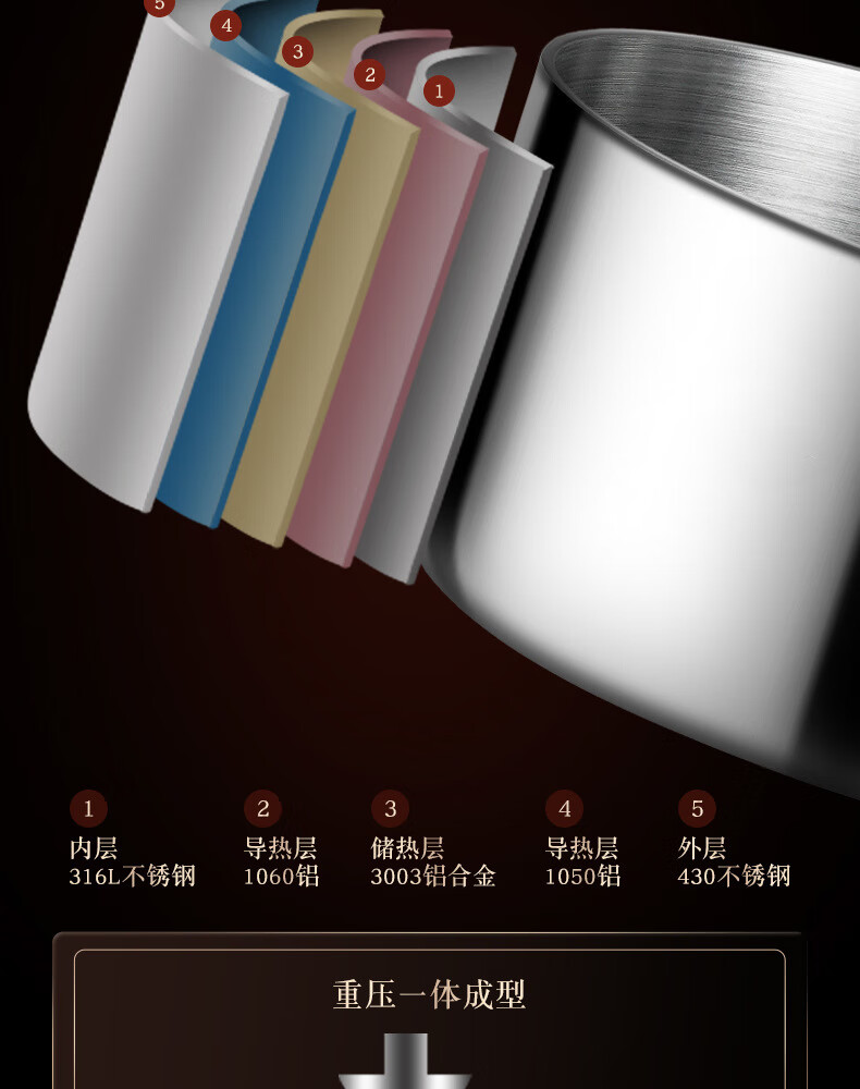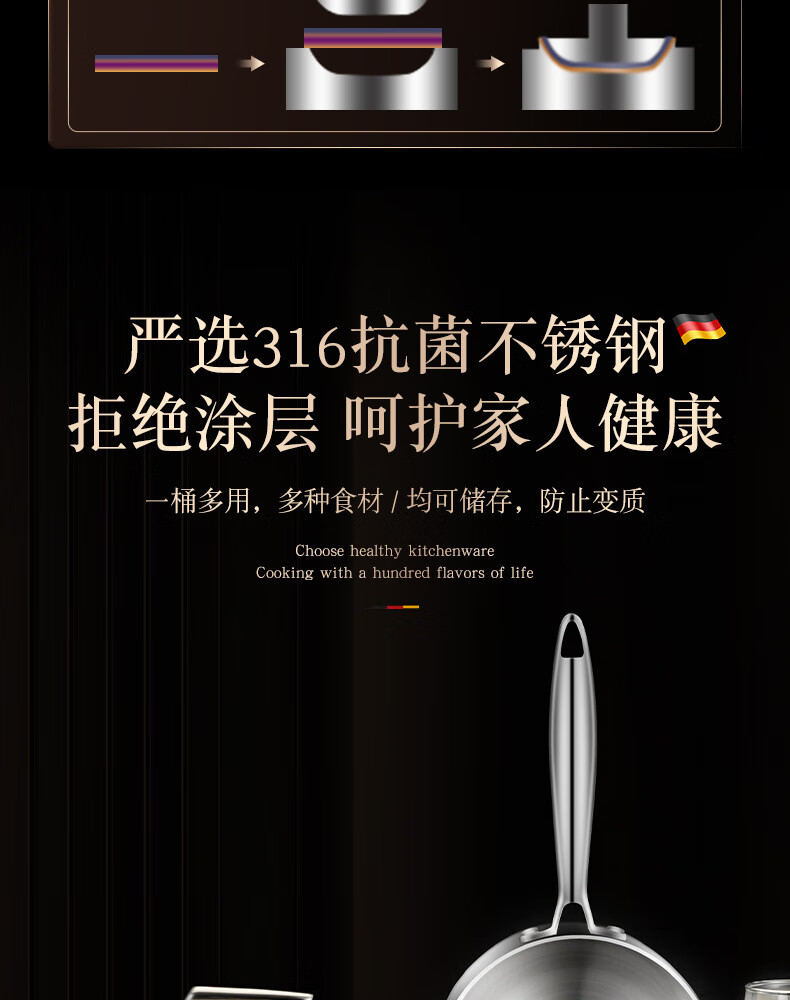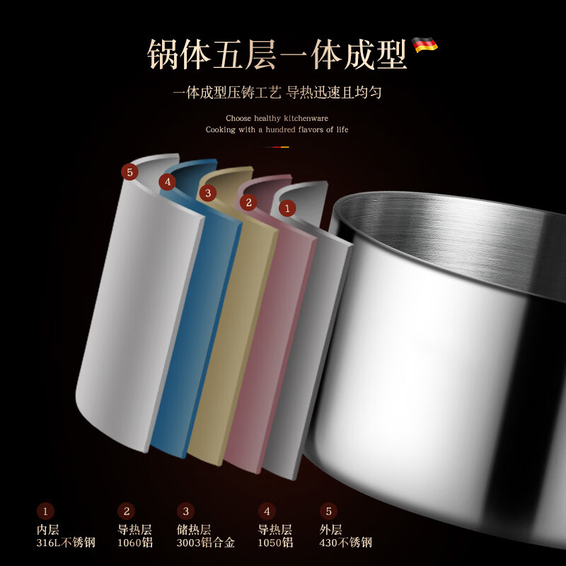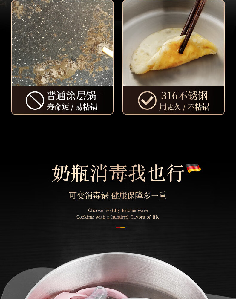 • 商品名称:HUIHUADU316不锈钢奶锅无涂层【德系工艺】316抗菌五层钢18cm奶锅+304蒸笼 奶锅/个