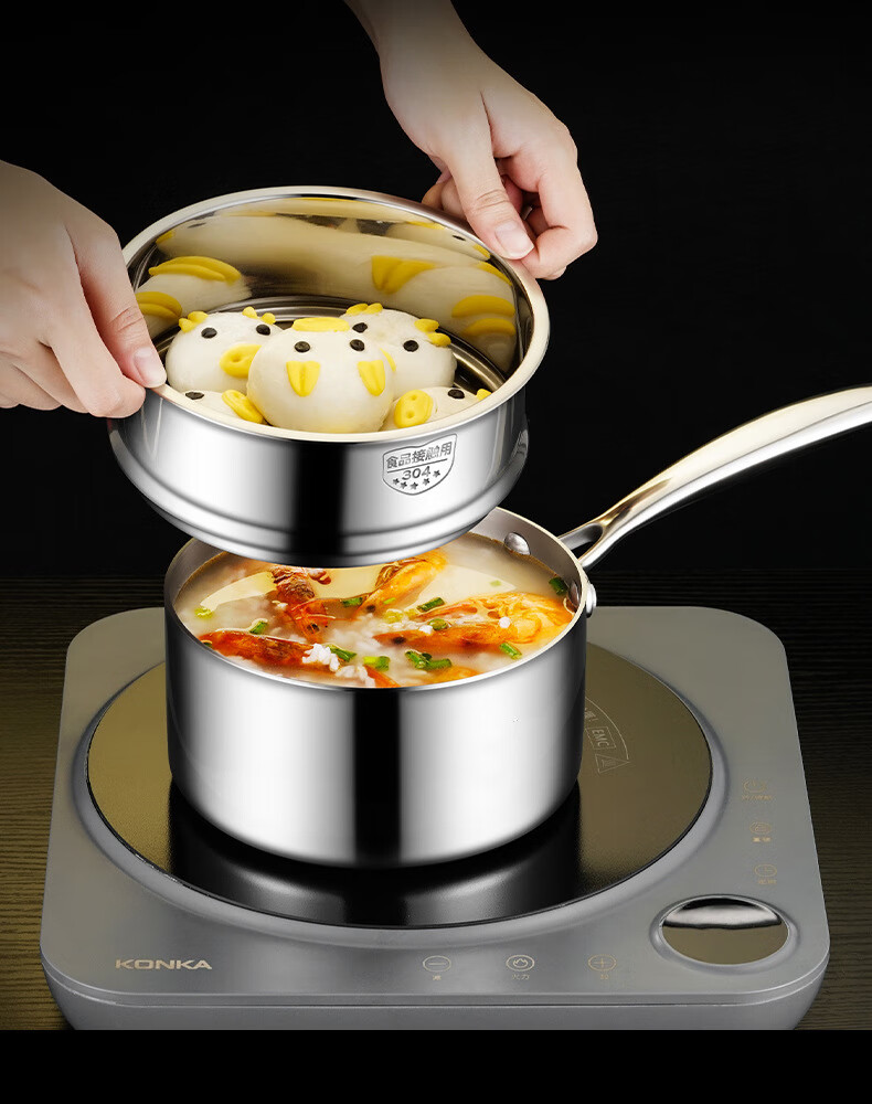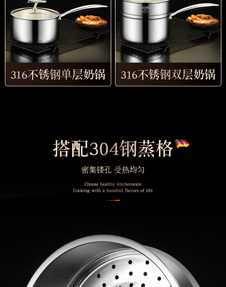 商品名称: HUIHUADU316不锈钢奶锅无涂层【德系工艺】316抗菌五层钢18cm奶锅+304蒸笼 奶锅/个
