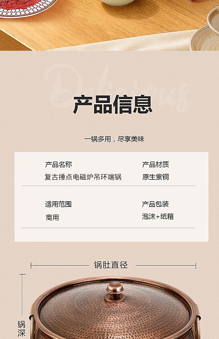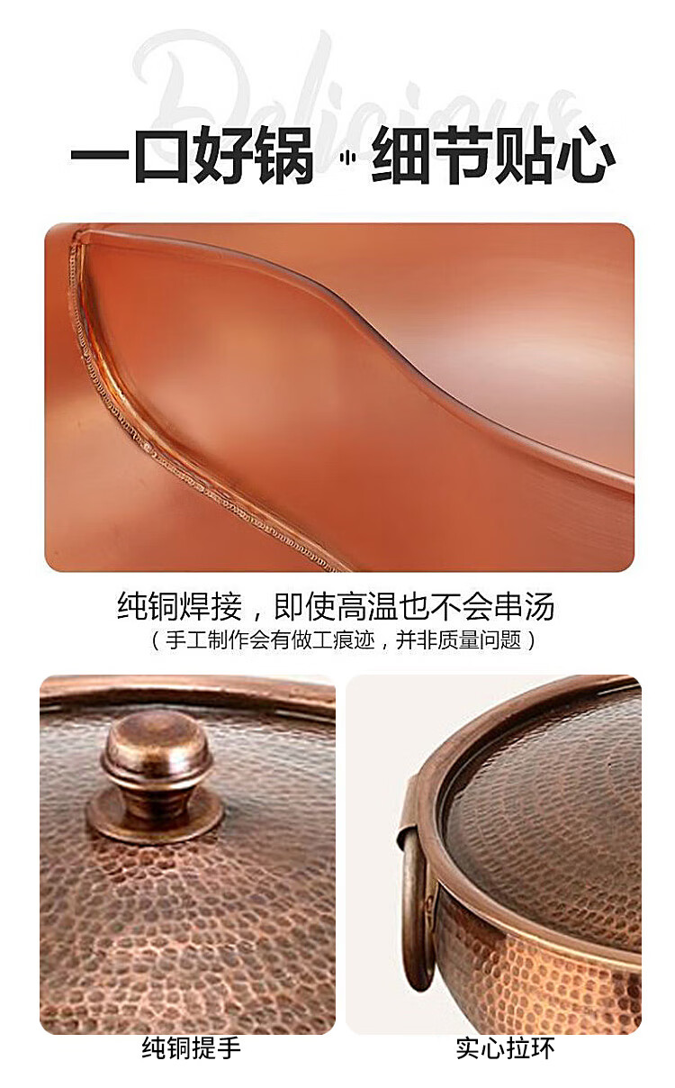 • 商品名称:益美得 PG342 纯铜火锅平底老式熬阿胶铜锅火锅盆 直径32cm 鸳鸯锅 PG342/个