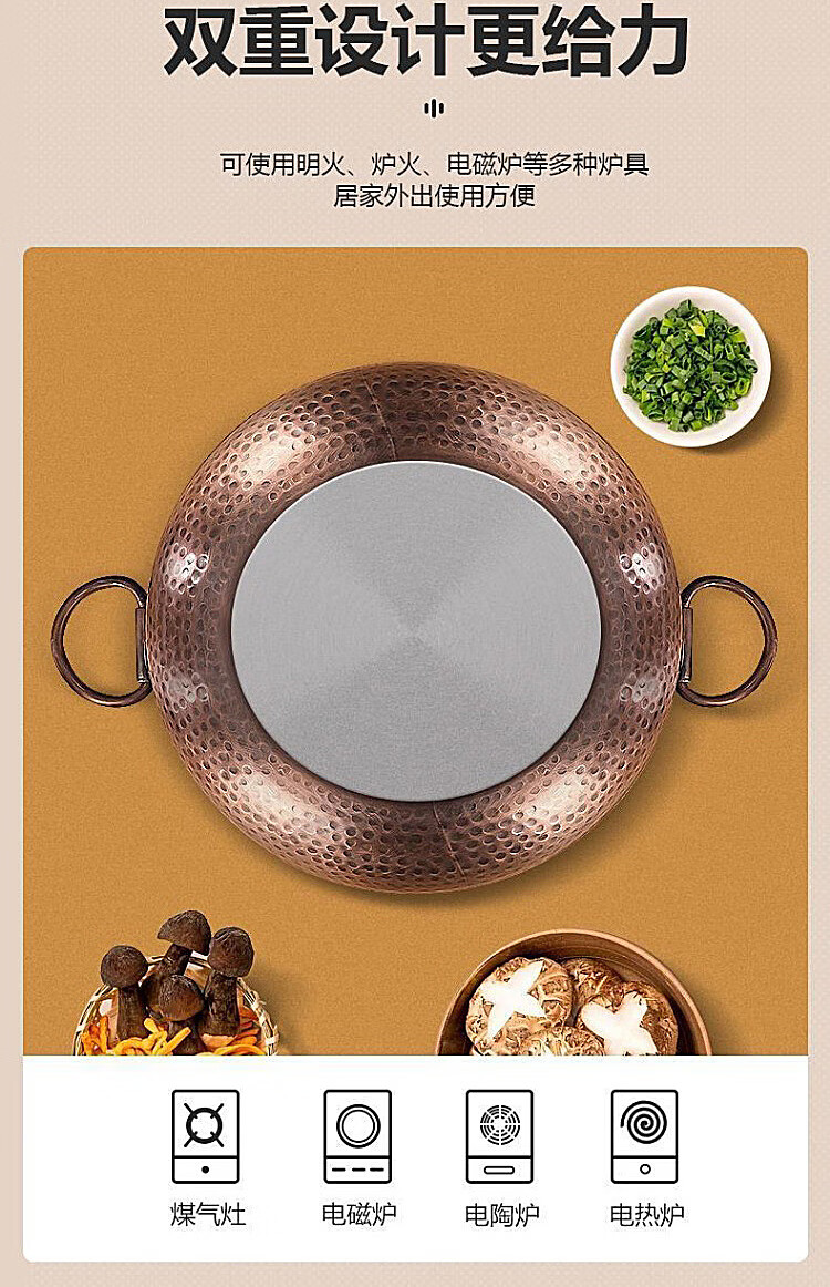 商品名称: 益美得 PG342 纯铜火锅平底老式熬阿胶铜锅火锅盆 直径32cm 鸳鸯锅 PG342/个