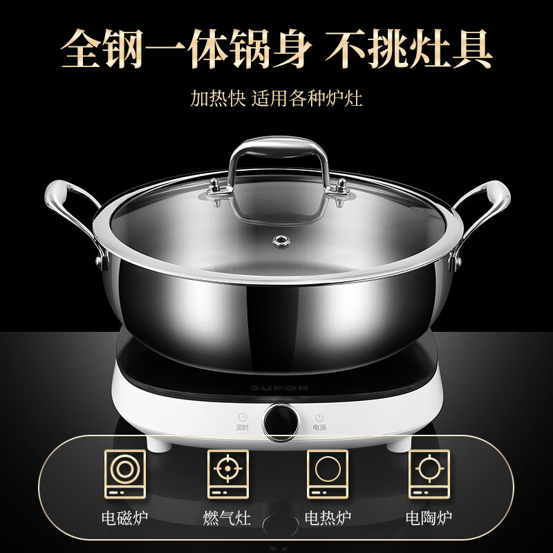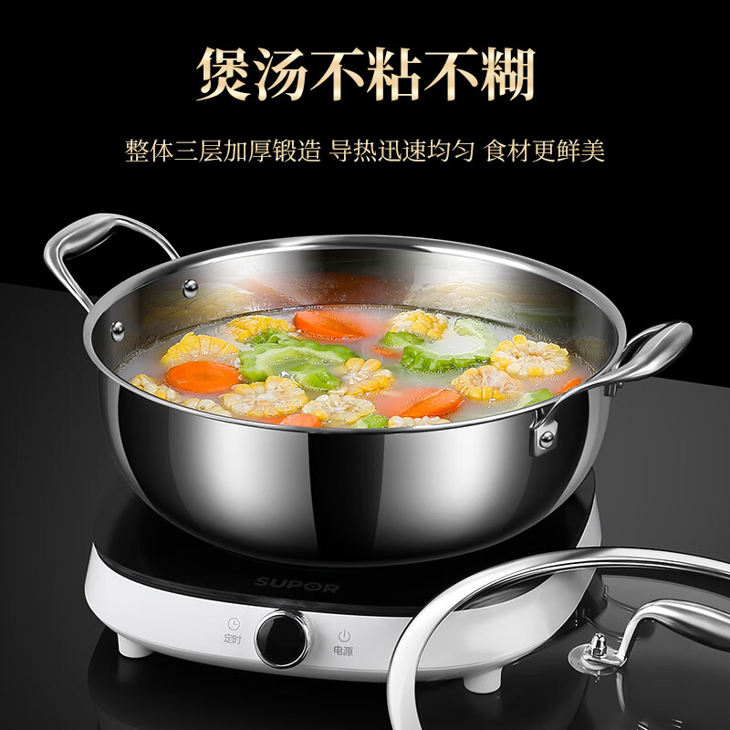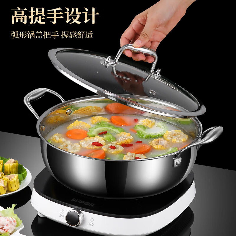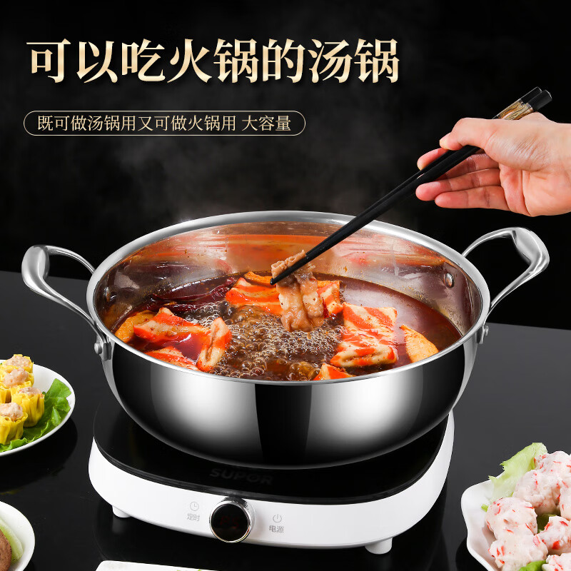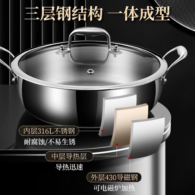 商品名称: 莱柏顿316L不锈钢汤锅炖锅大容量家用火锅蒸煮锅燃气灶电磁炉通用32cm 316L汤锅【内径32cm】/只