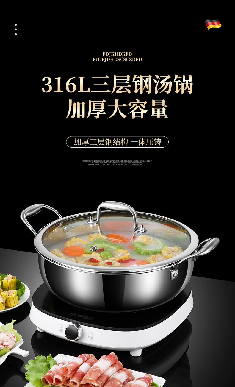 厨具  > 烹饪锅具  > 汤锅  >  莱柏顿  >  莱柏顿316L不锈钢汤锅炖锅大容量家用火锅蒸煮锅燃气灶电磁炉通用32cm 316L汤锅【内径32cm】/只
