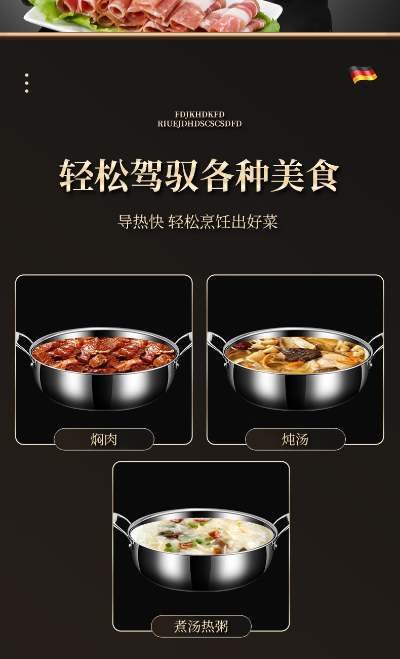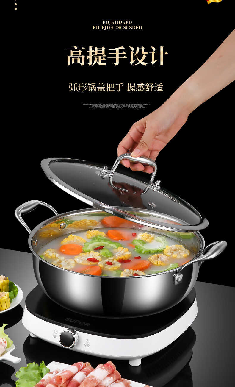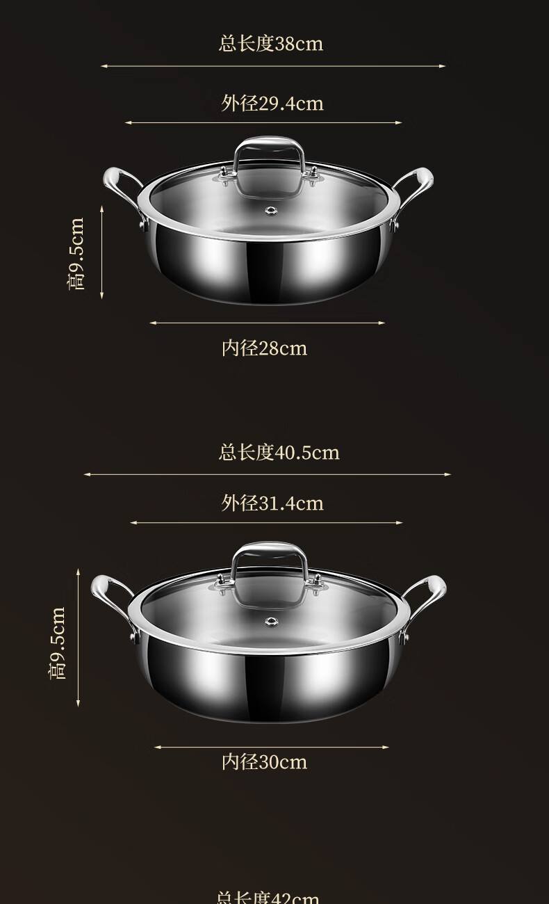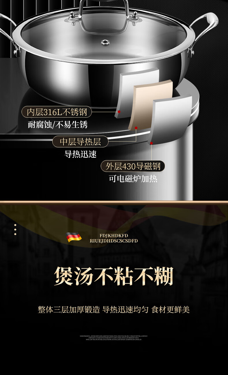 • 商品名称:莱柏顿316L不锈钢汤锅炖锅大容量家用火锅蒸煮锅燃气灶电磁炉通用32cm 316L汤锅【内径32cm】/只