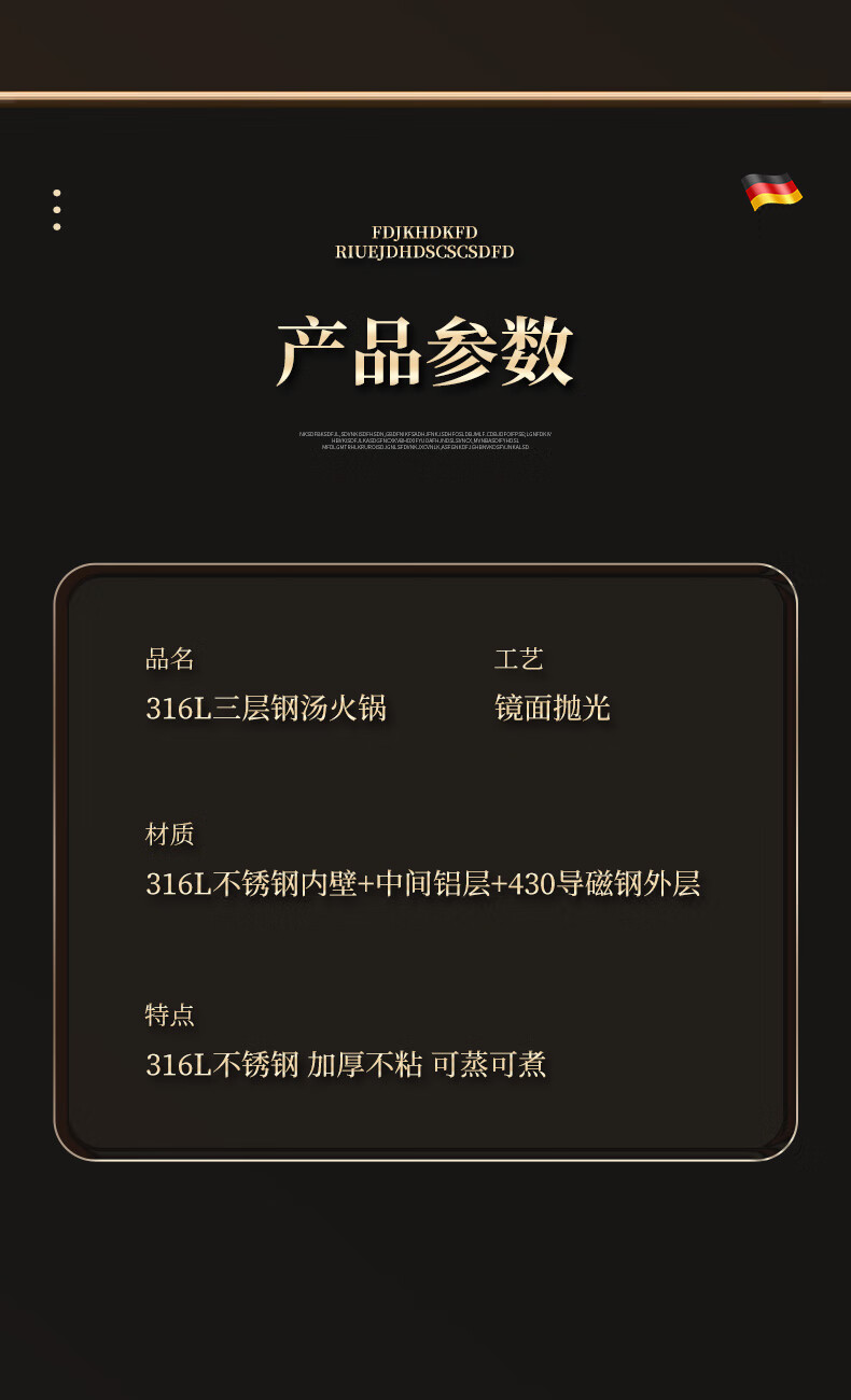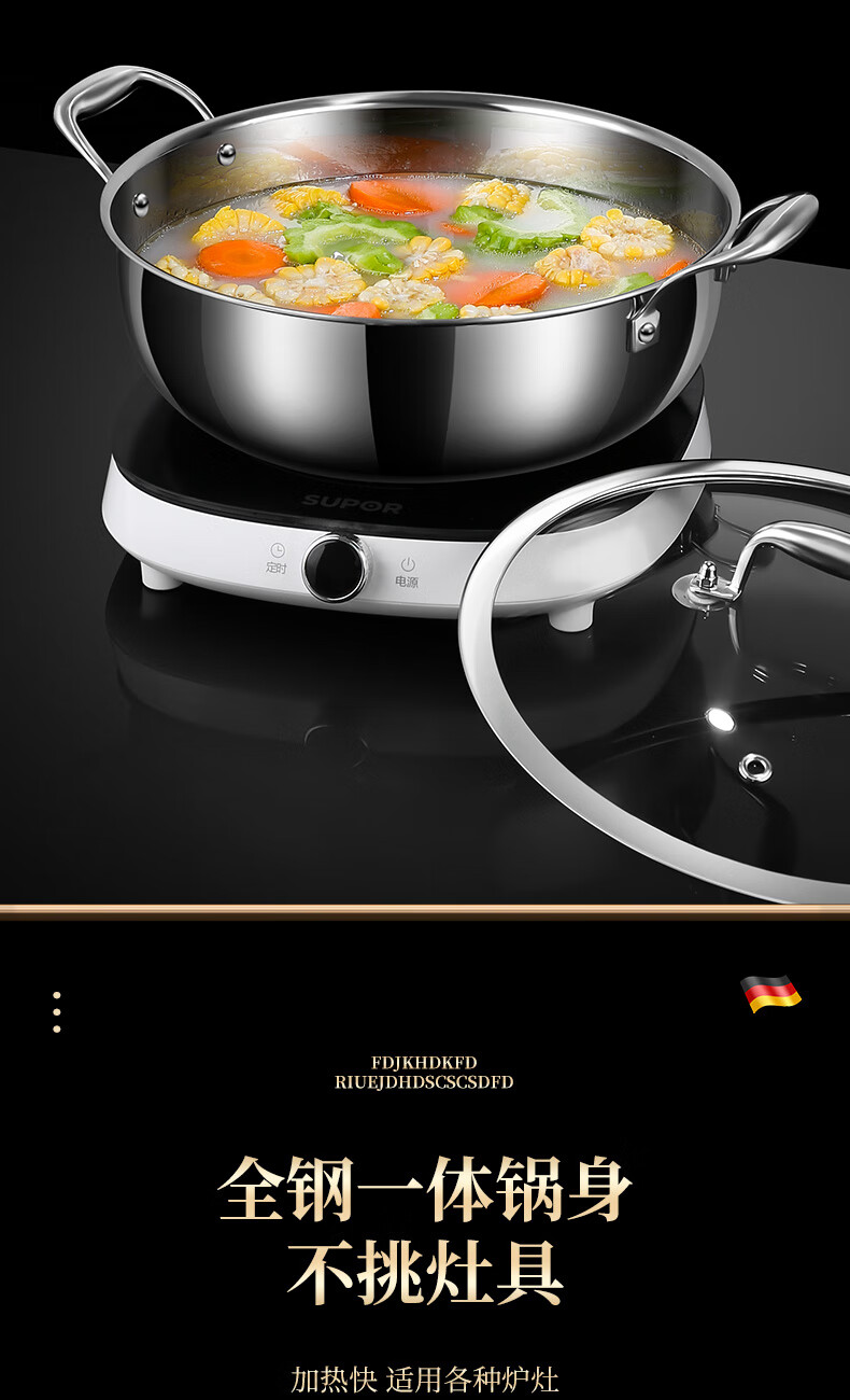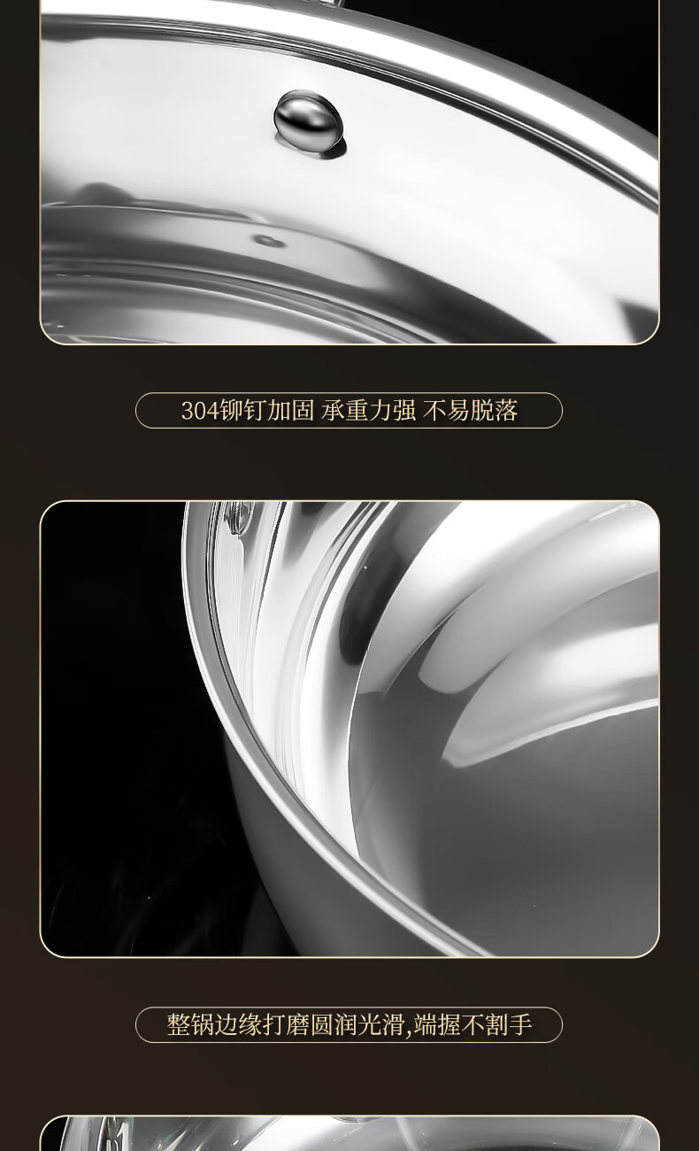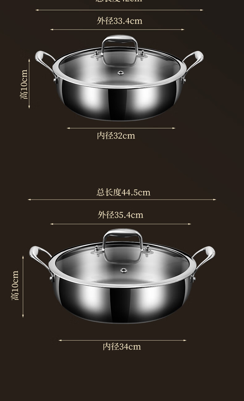 • 商品名称:莱柏顿316L不锈钢汤锅炖锅大容量家用火锅蒸煮锅燃气灶电磁炉通用32cm 316L汤锅【内径32cm】/只
