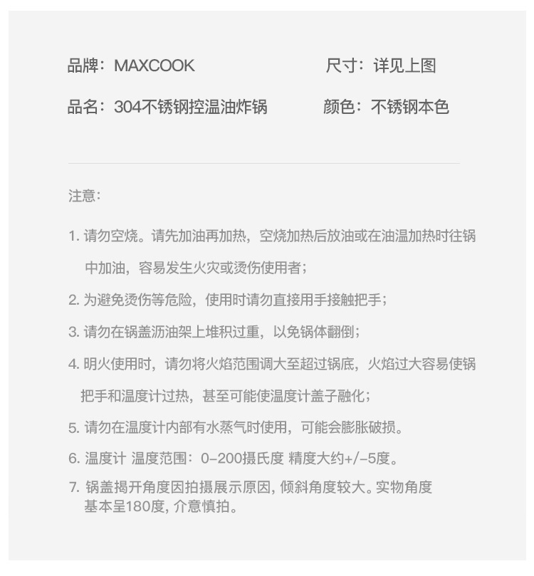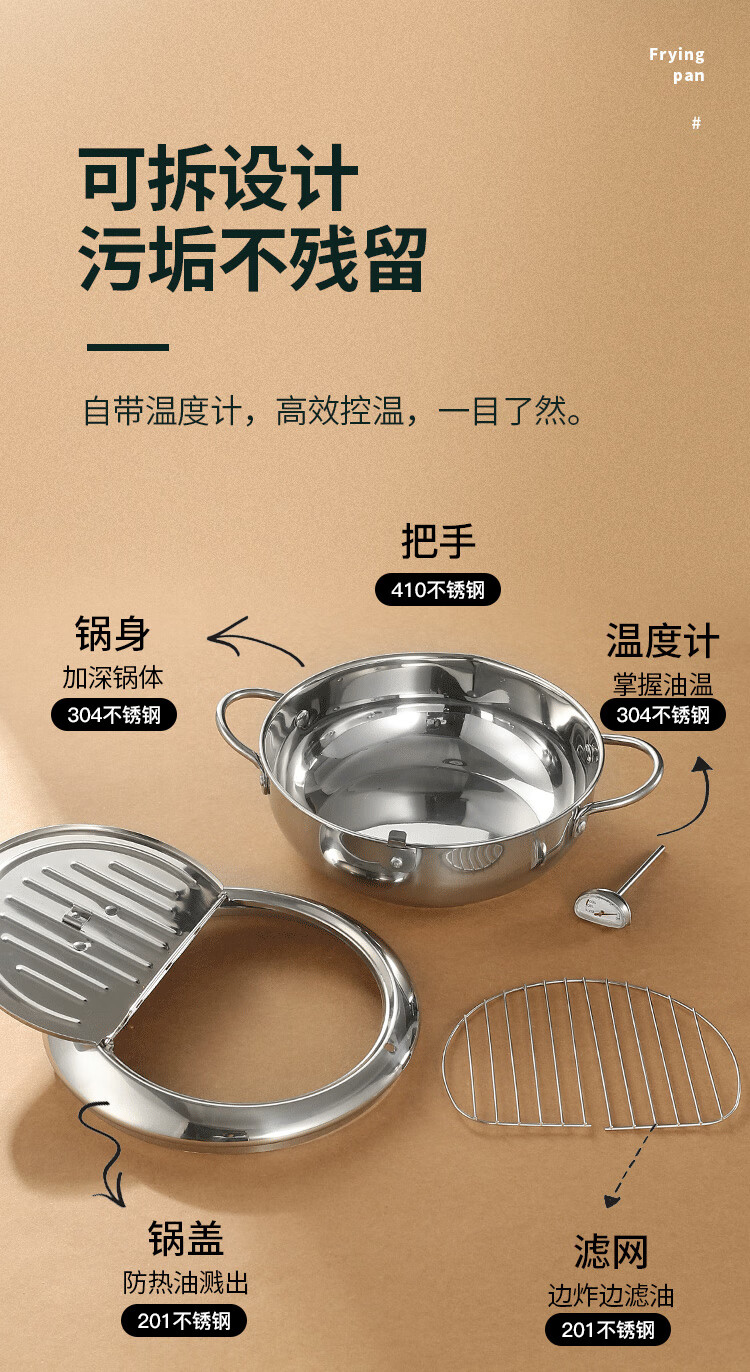 商品名称: 美厨(maxcook)油炸锅汤锅20cm 304不锈钢控温汤锅平底锅 电磁炉明火通用MCT6945 油炸锅/个